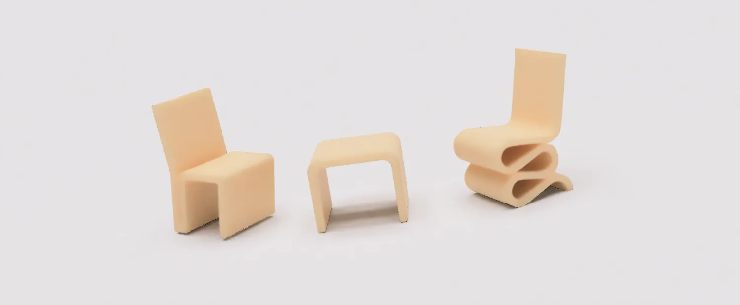Ghế bên cho nhà búp bê phong cách Frank Gehry
