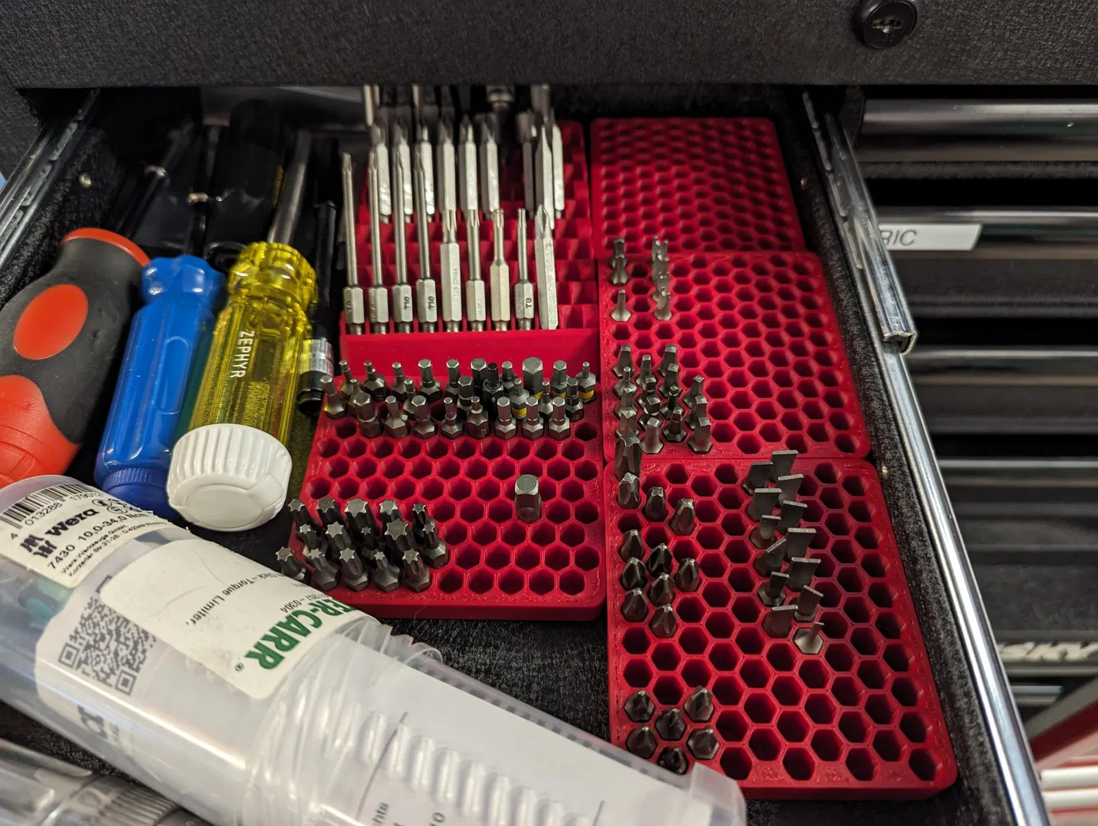 Một giá đỡ bit lục giác kiểu “tổ ong” hoàn toàn tham số cho hộp công cụ của bạn.