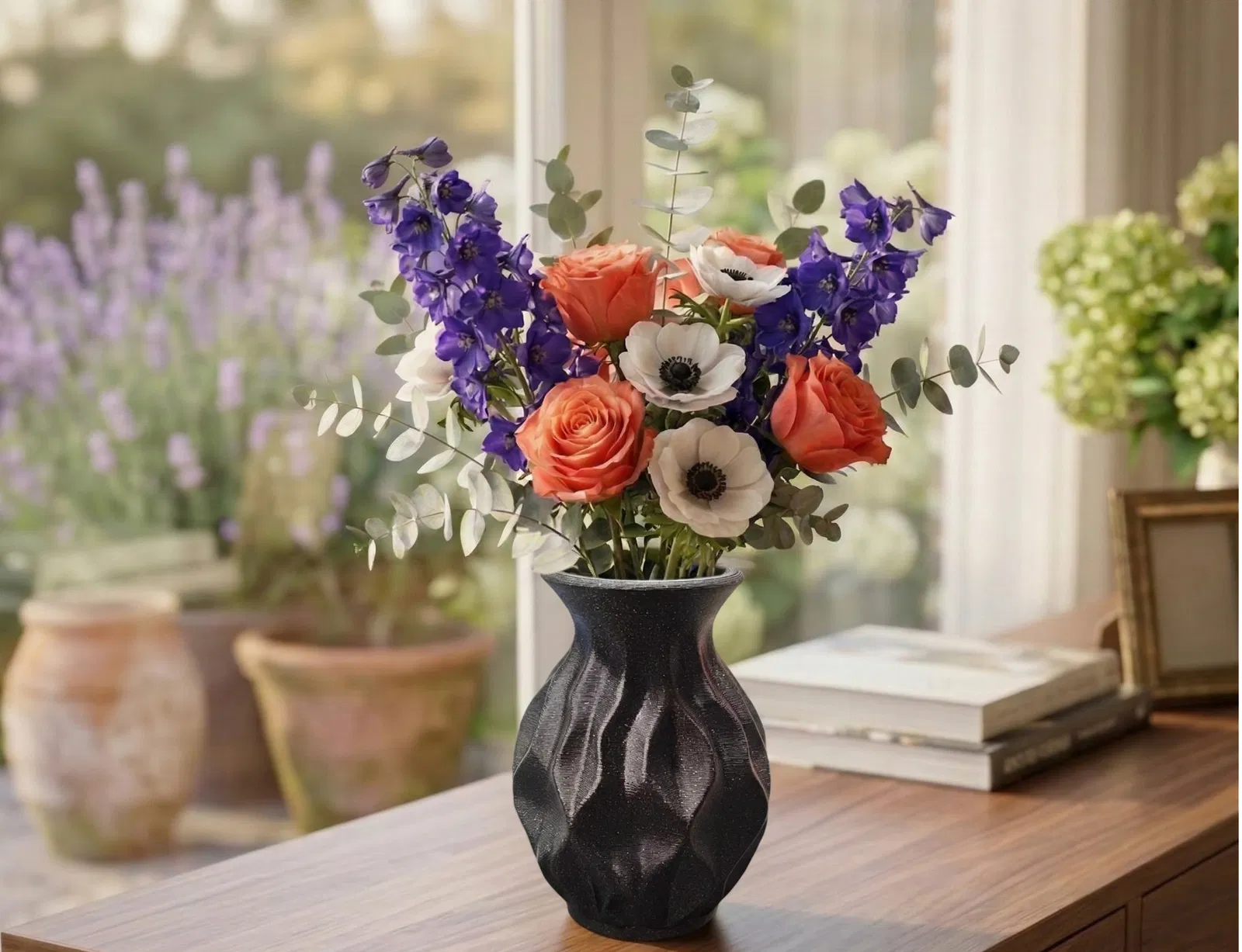 Mẫu bình hoa Obsidian Ripple với họa tiết gợn sóng bắt mắt, được tối ưu hóa để bắt sáng và tạo chiều sâu. Sản phẩm cực kỳ thích hợp để trang trí cho các loại cây xương rồng, sen đá hoặc cắm hoa trong không gian sống của bạn.