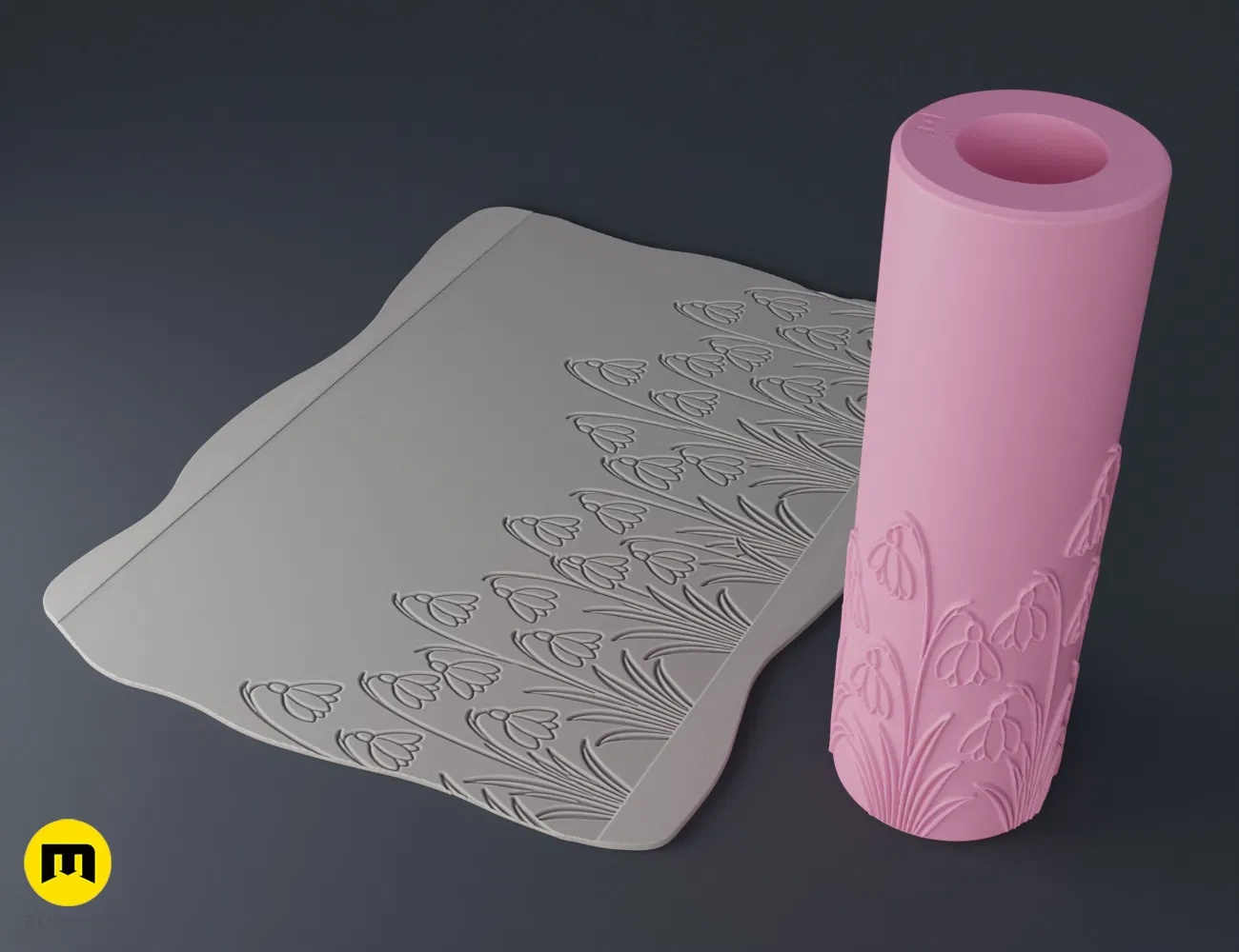Mô hình 3D kỹ thuật số của con lăn tạo họa tiết chủ đề Mùa Xuân - Hoa Tuyết Điểm. Sản phẩm được thiết kế tối ưu cho việc in 3D, lý tưởng để tạo vân cho đất sét, xốp EVA và nhiều vật liệu sáng tạo khác. Dễ dàng tùy chỉnh và in ấn.