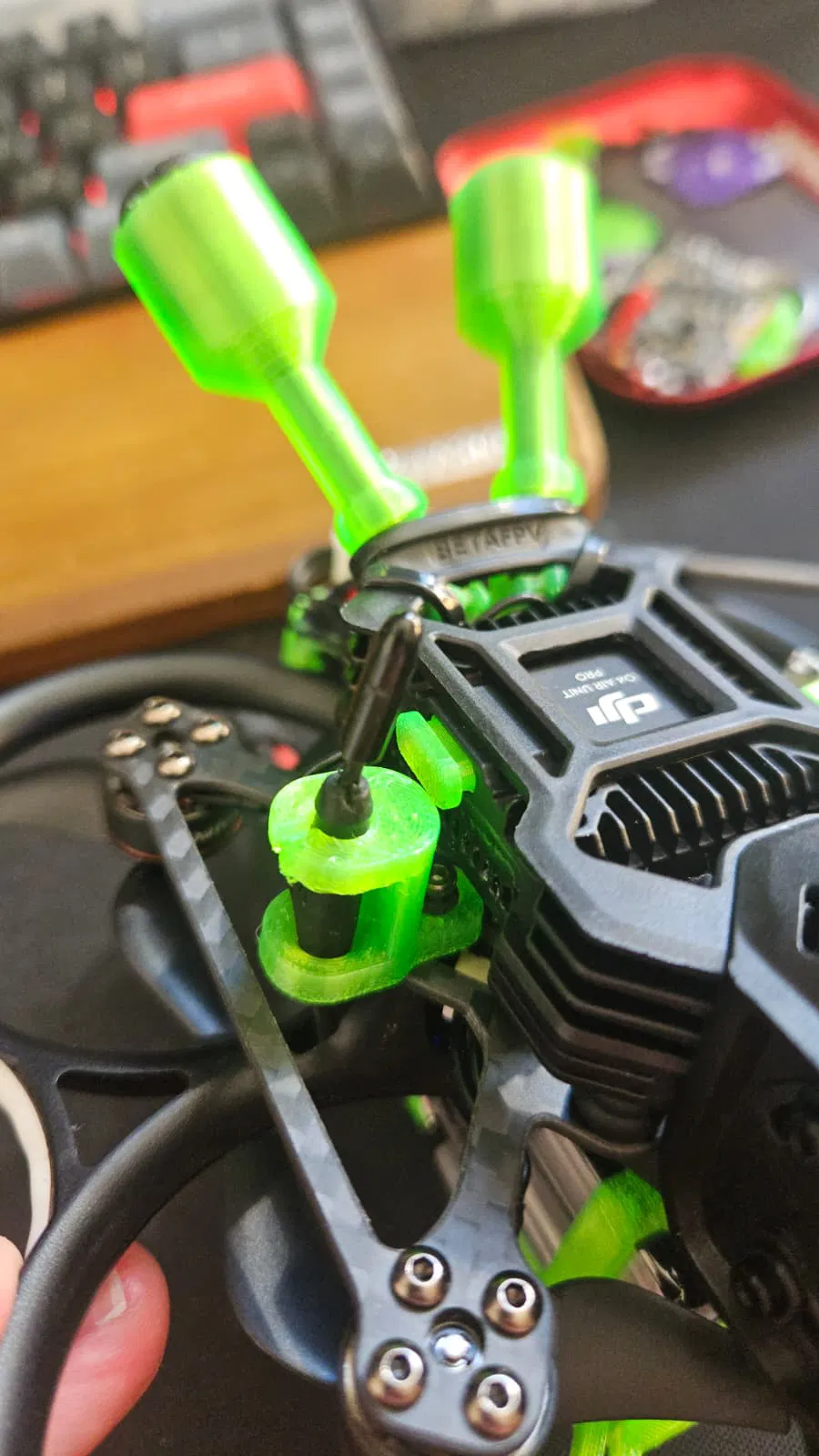 Đây là trọn bộ các linh kiện TPU mình thiết kế cho PAVO20 PRO II. Mình tập trung vào khả năng bảo vệ và độ bền vì mình dùng con này để quay phim chuyên nghiệp. Bộ này có làm máy nặng thêm một chút, nhưng với cinewhoop thì mình thấy hoàn toàn xứng đáng. Nếu bạn muốn dùng để bay freestyle, hãy cân nhắc xem mức trọng lượng tăng thêm này có phù hợp với nhu cầu của mình không nhé.