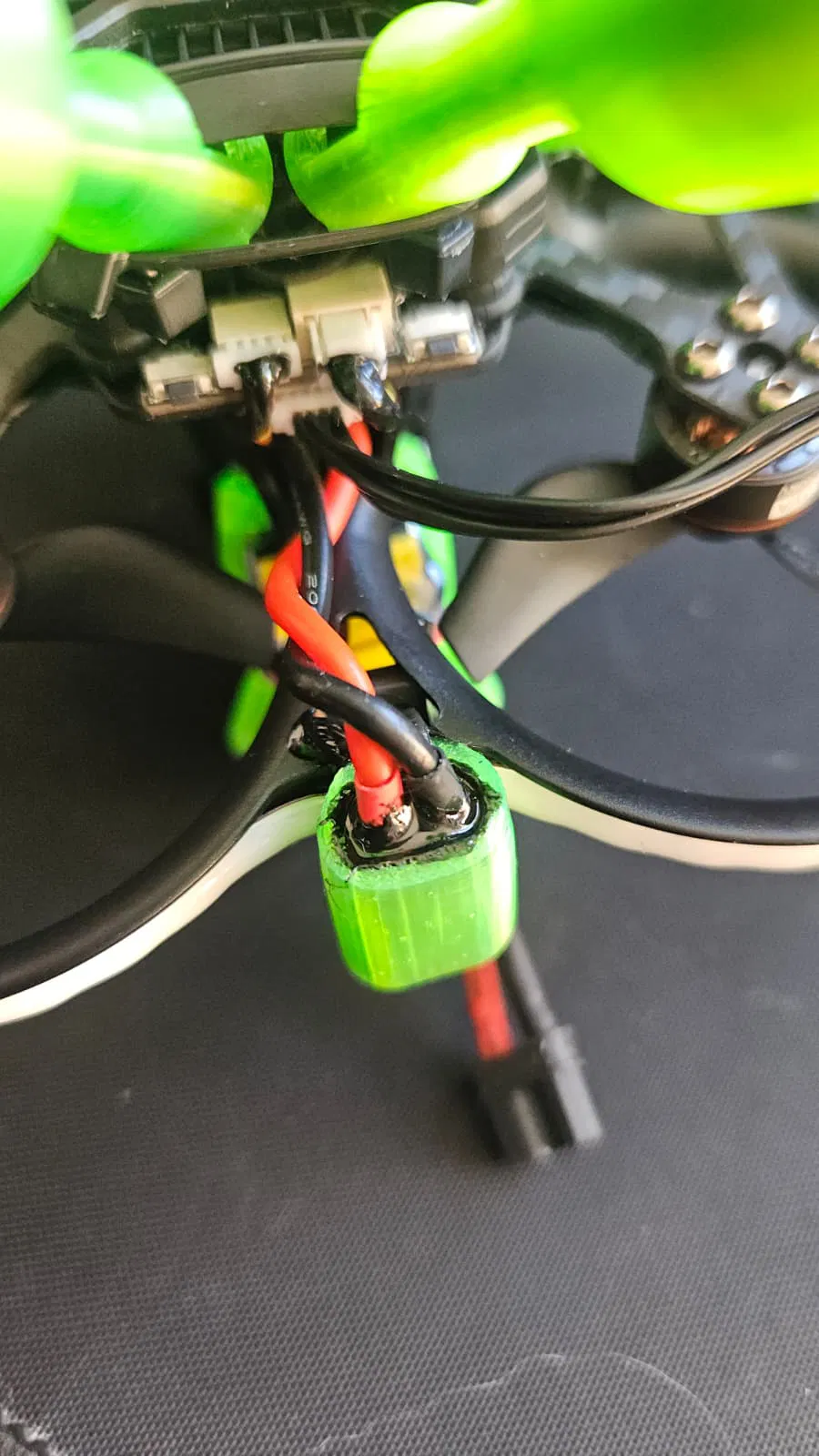 Mình khuyên bạn nên cho thêm một ít keo T7000 vào mặt trên của đế giữ XT30 để bảo vệ mối hàn khi xảy ra va chạm.