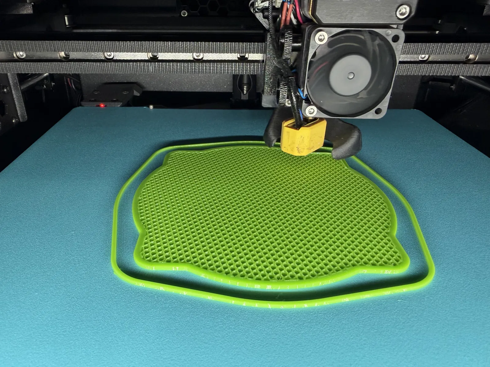 Phần lõi TPU này được thiết kế không có lớp đáy và không có lớp bề mặt (top/bottom layers). Mình đã sử dụng kiểu infill dạng tổ ong với mật độ 30% để tạo ra hiệu ứng này. Bạn có thể thử nghiệm thêm với các kiểu infill khác nhé!