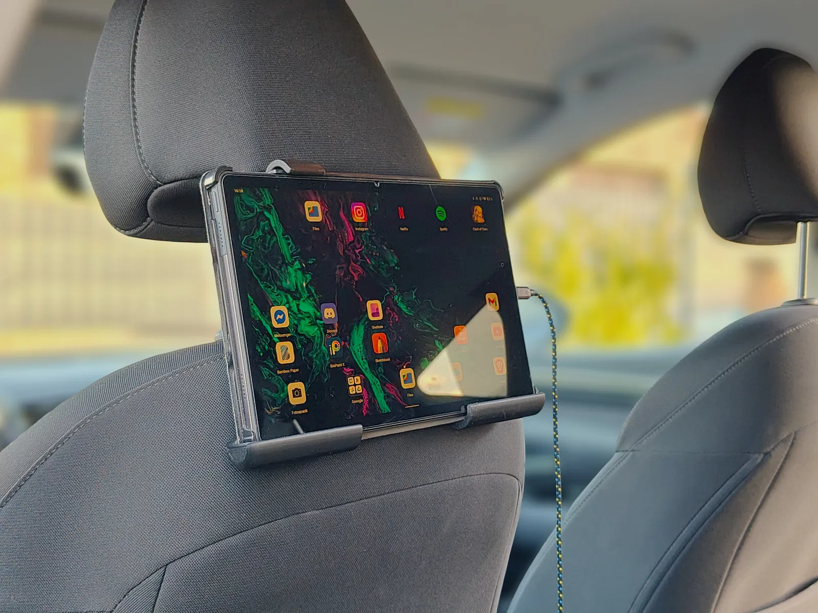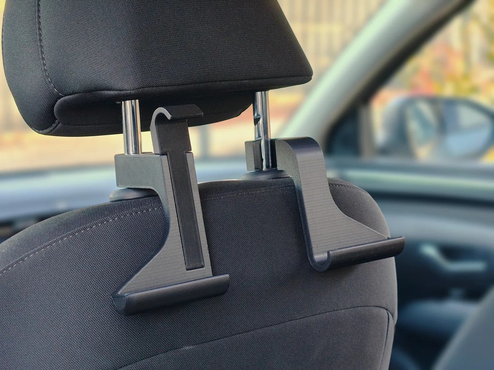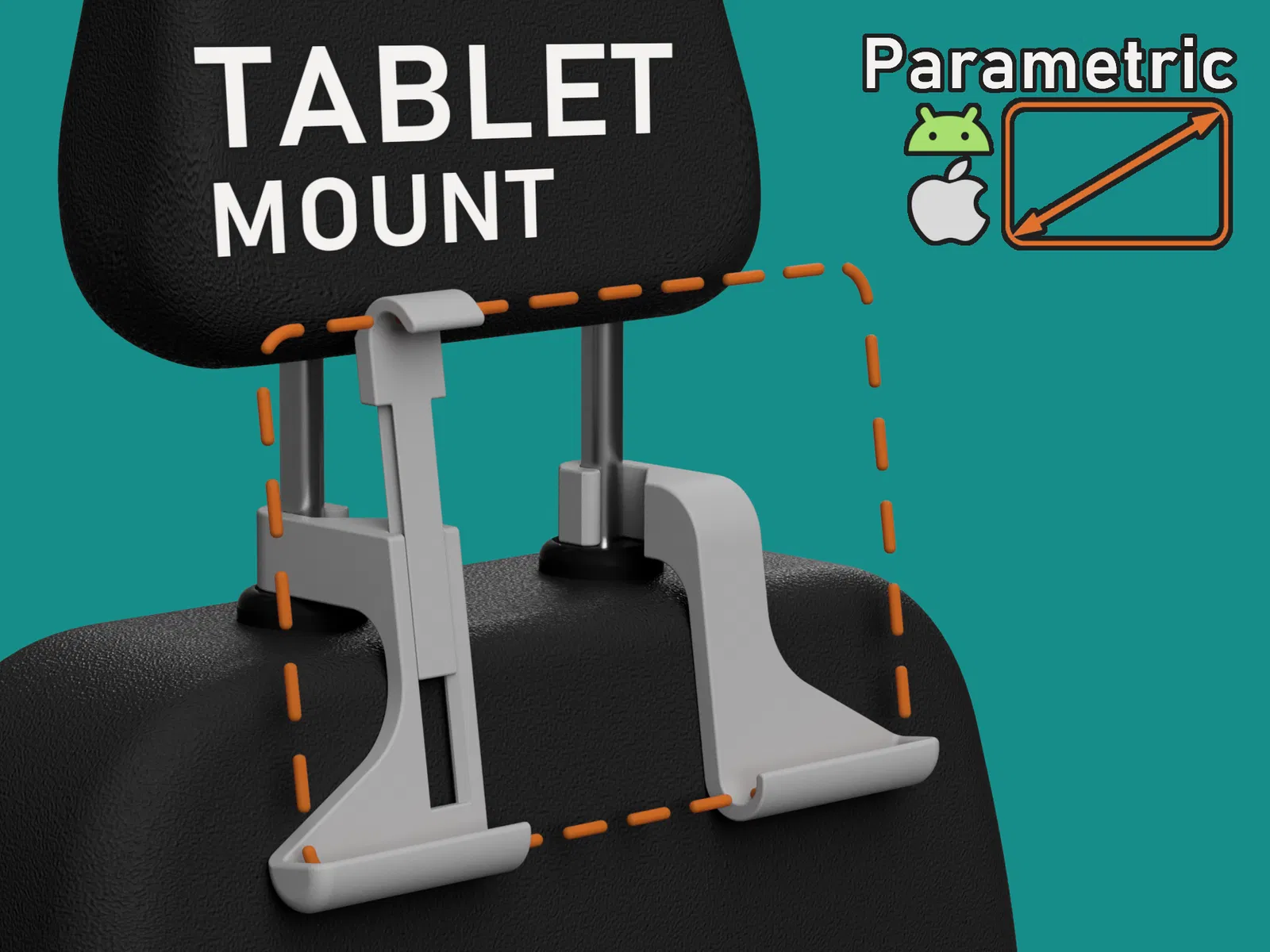 Giá đỡ máy tính bảng này được thiết kế để gắn trực tiếp vào hai thanh trụ tựa đầu ghế xe hơi.