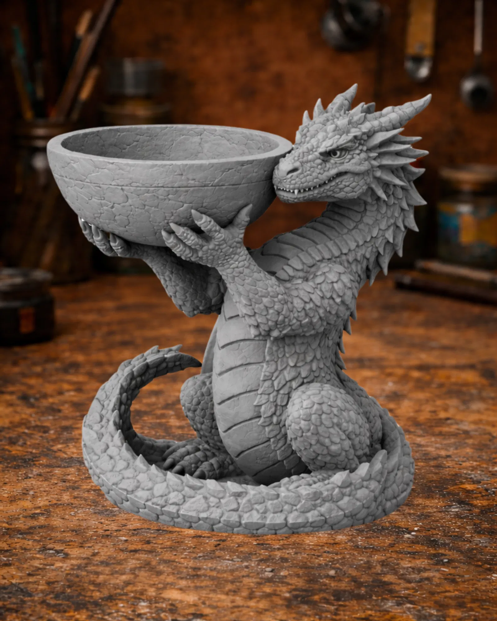 Bạn đang tìm kiếm một món đồ trang trí độc đáo và đầy phong cách cho góc làm việc? Mô hình rồng giữ bát đá (Dragon Bowl Holder) chính là gợi ý hoàn hảo dành cho bạn. Với thiết kế tinh xảo, chú rồng dũng mãnh đang nâng niu chiếc bát mang họa tiết đá đầy bí ẩn, tạo nên một vật phẩm trang trí đậm chất fantasy. Sản phẩm không chỉ có tính thẩm mỹ cao mà còn rất tiện dụng, bạn có thể dùng để đựng xúc xắc, trang sức, chìa khóa hoặc các vật dụng nhỏ xinh khác. Đây chắc chắn là món đồ không thể thiếu cho những người yêu thích phong cách Gothic, huyền bí và muốn tạo điểm nhấn riêng biệt cho không gian sống của mình. Hãy in ngay mẫu này để tự tay tạo ra một người bảo vệ nhỏ nhắn cho bàn làm việc của bạn.
