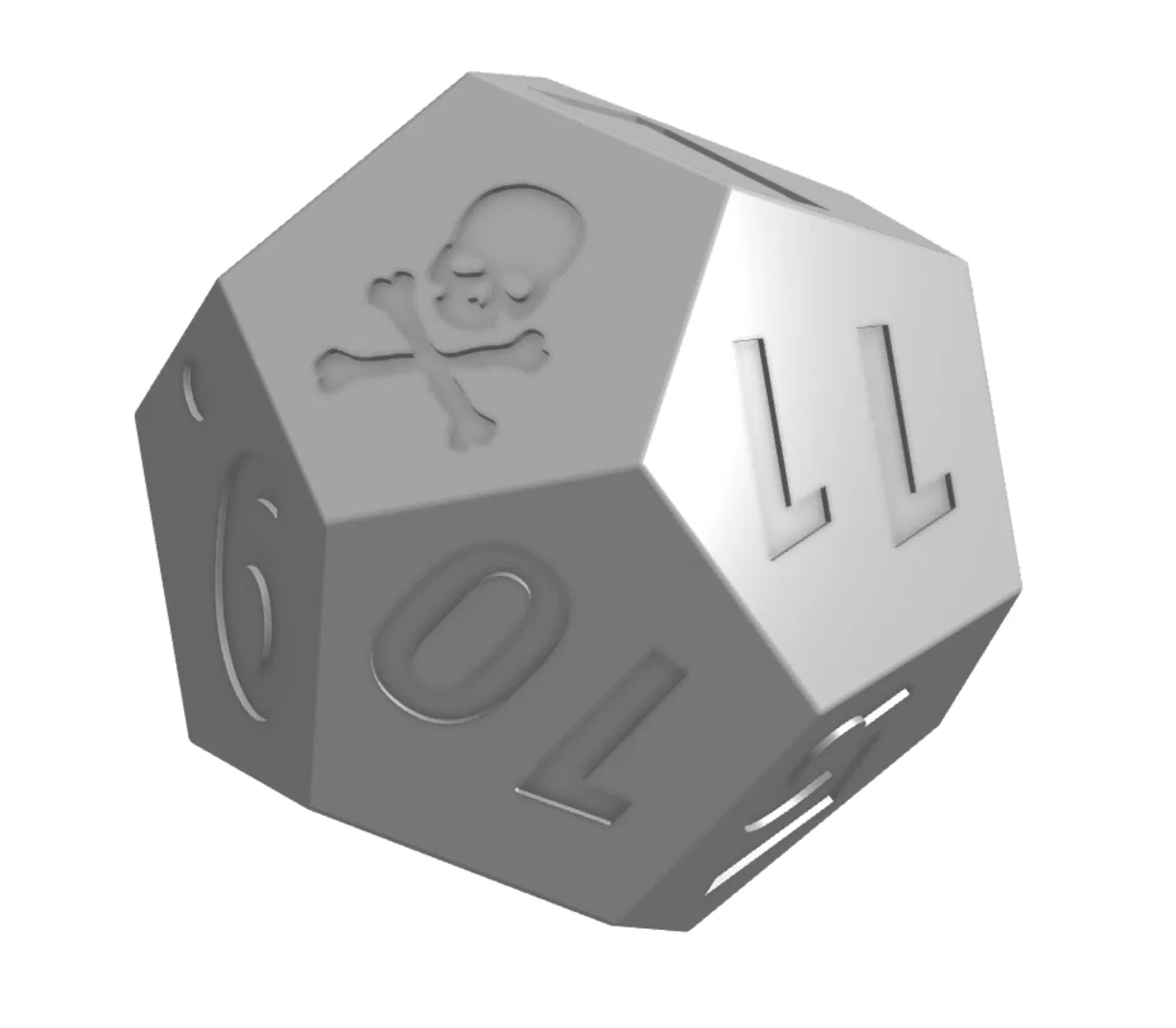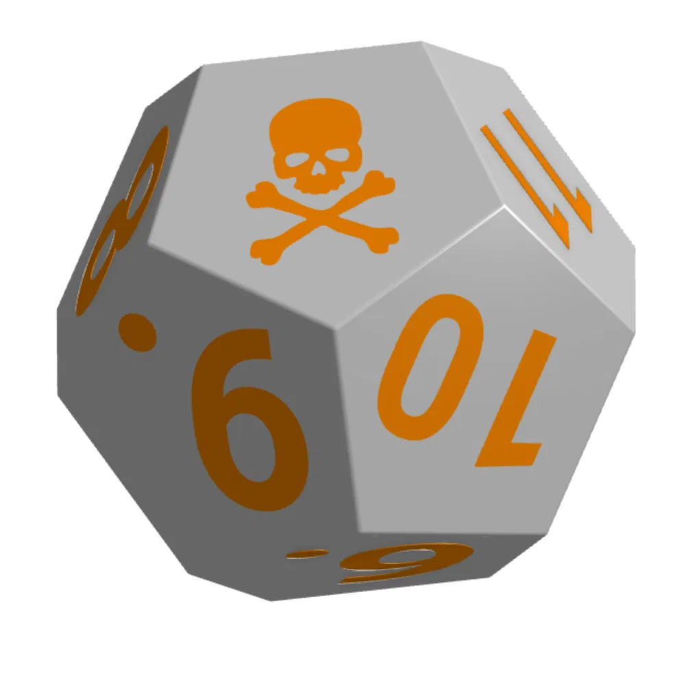 Viên xúc xắc D12 độc đáo với biểu tượng đầu lâu thay thế cho mặt số cao nhất. Cấu trúc rỗng đặc biệt giúp tăng tỉ lệ đổ ra mặt đầu lâu, cực kỳ phù hợp để tạo điểm nhấn cho các trò chơi nhập vai, DnD hoặc những tình huống đầy rủi ro.