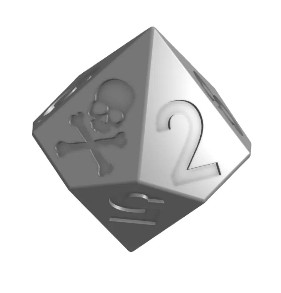 Bộ xúc xắc D10 với hình đầu lâu thay thế cho số cao nhất. Cấu trúc rỗng đặc biệt và khả năng thêm ốc M6 để tạo trọng tâm giúp tăng tỉ lệ đổ ra hình đầu lâu. Sản phẩm hỗ trợ cả in đơn sắc và đa sắc, tối ưu cho FDM không cần support.