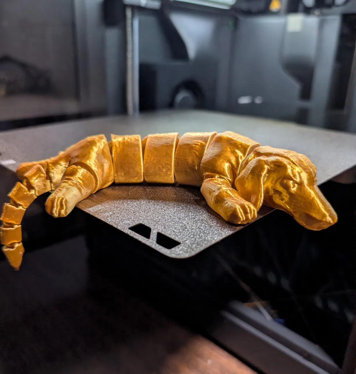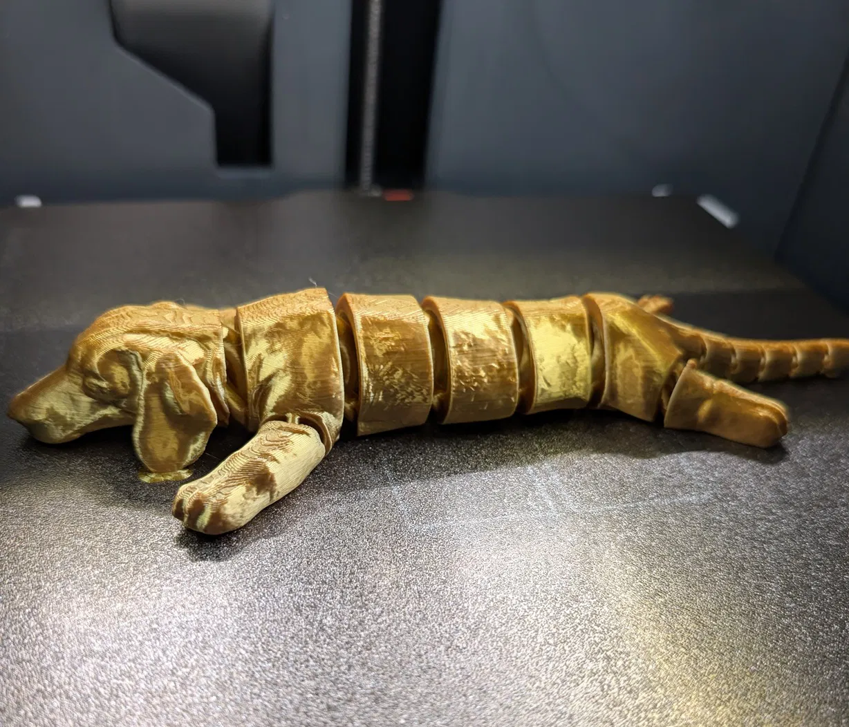 Đây là chú chó xúc xích flexi cho mọi người giải trí đây. Mình có thêm vài phần brim nhỏ để giúp bám dính tốt hơn ở phần tai và chóp đuôi. Mình khuyên là mọi người không nên in thu nhỏ quá nhé, vì như vậy các khớp nối ở đuôi có thể sẽ không cử động được đâu. Chúc mọi người in vui vẻ!