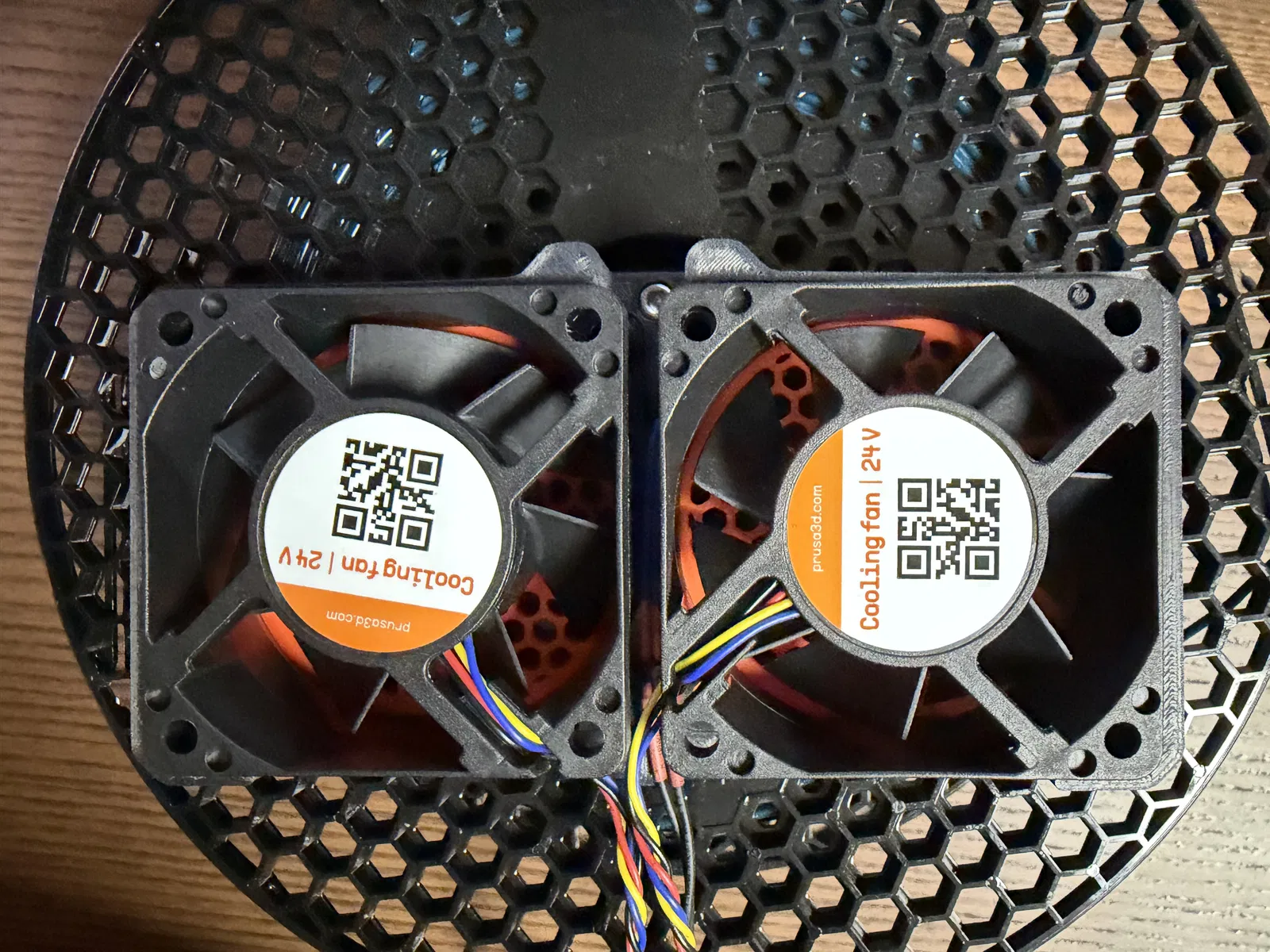 Các khung đỡ được bắt vào lưới tản nhiệt của DET-Man bằng ốc M3x10. Bạn cần lắp các miếng nhiệt (heat-set inserts) vào khung đỡ. Sau đó, quạt sẽ được gắn vào tấm ốp phía sau bằng chính đinh tán nhựa đi kèm máy.