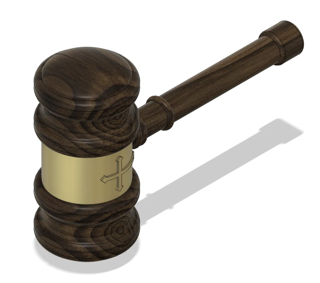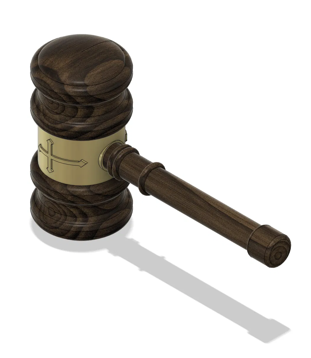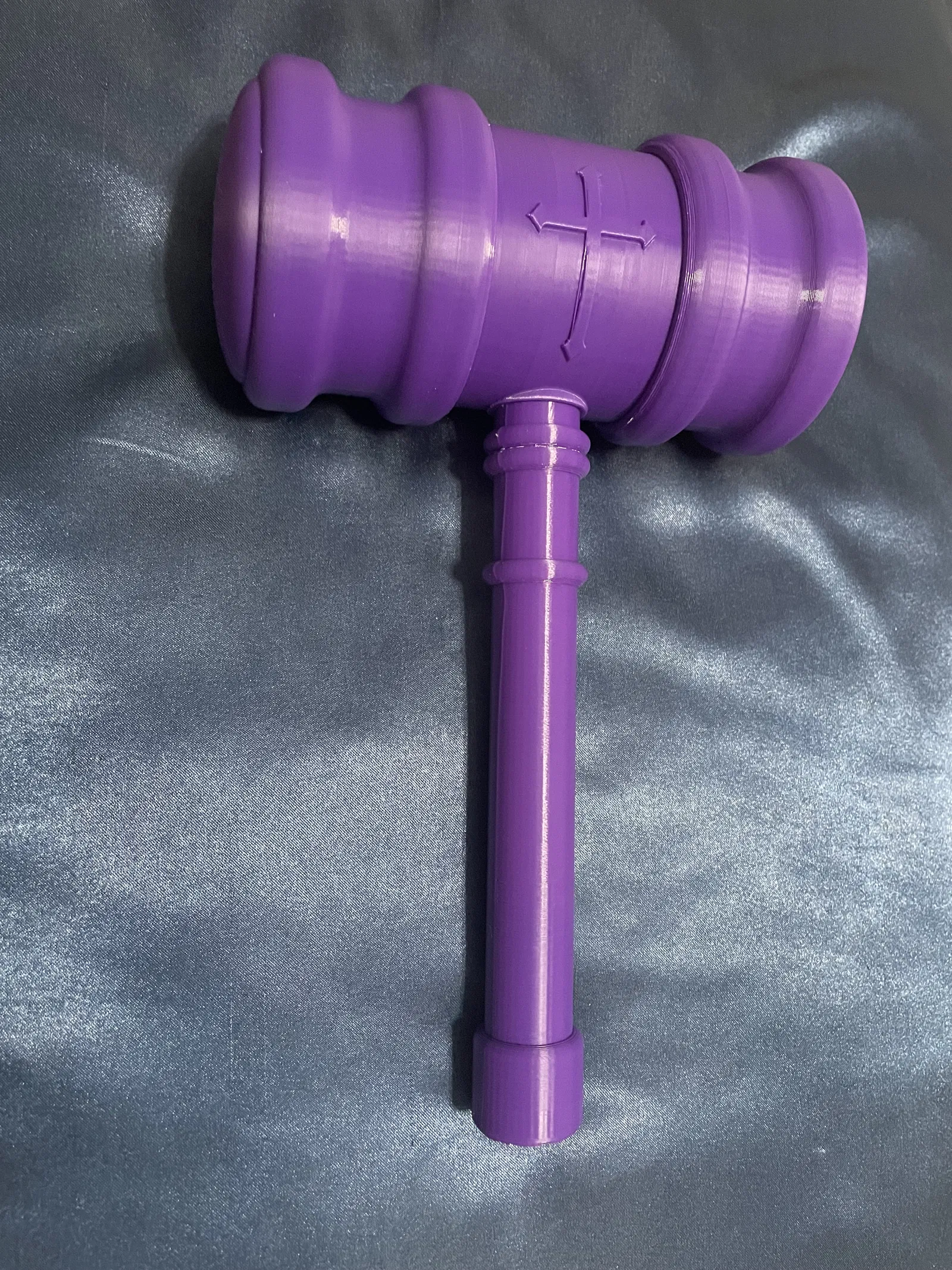 Sau khi xem tập phim giới thiệu về Higuruma, mình đã rất muốn sở hữu cây búa của anh ấy. Phiên bản trong manga có tạo hình khá thất thường, nên mình quyết định thiết kế mô hình này dựa trên những hình ảnh trong anime. Mô hình này tổng cộng gồm 4 phần: phần cán, phần thân giữa của đầu búa và hai mảnh ốp hai bên. Phần cán và thân giữa được thiết kế có ren để vặn khớp với nhau mà không cần dùng keo. Mình gợi ý các bạn nên in phần cán theo chiều thẳng đứng với đầu có ren hướng lên trên. Các bạn có thể thử in không cần support, nhưng mình không chắc chắn vì mình đã in với support. Phần thân giữa nên đặt mặt phẳng xuống bàn in và bật support cho lỗ ren bên trong. Hai mảnh ốp hai bên giống hệt nhau, nên bạn chỉ cần in hai lần file đó. Các mảnh này cần dán keo vào phần thân giữa, nhưng chúng khớp với nhau khá khít nên sẽ không bị xê dịch khi chờ keo khô. Mình đã điều chỉnh lại khoảng cách ren vì khi in bản đầu tiên, nó cực kỳ chật. Mình chưa test lại kích thước mới này, nên nếu có vấn đề gì, mong các bạn để lại bình luận nhé. Mình vẫn chưa kịp sơn cây búa, nhưng chắc chắn sẽ cập nhật hình ảnh sau khi hoàn thiện sớm thôi.