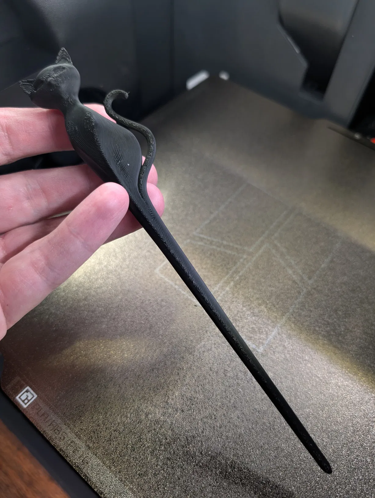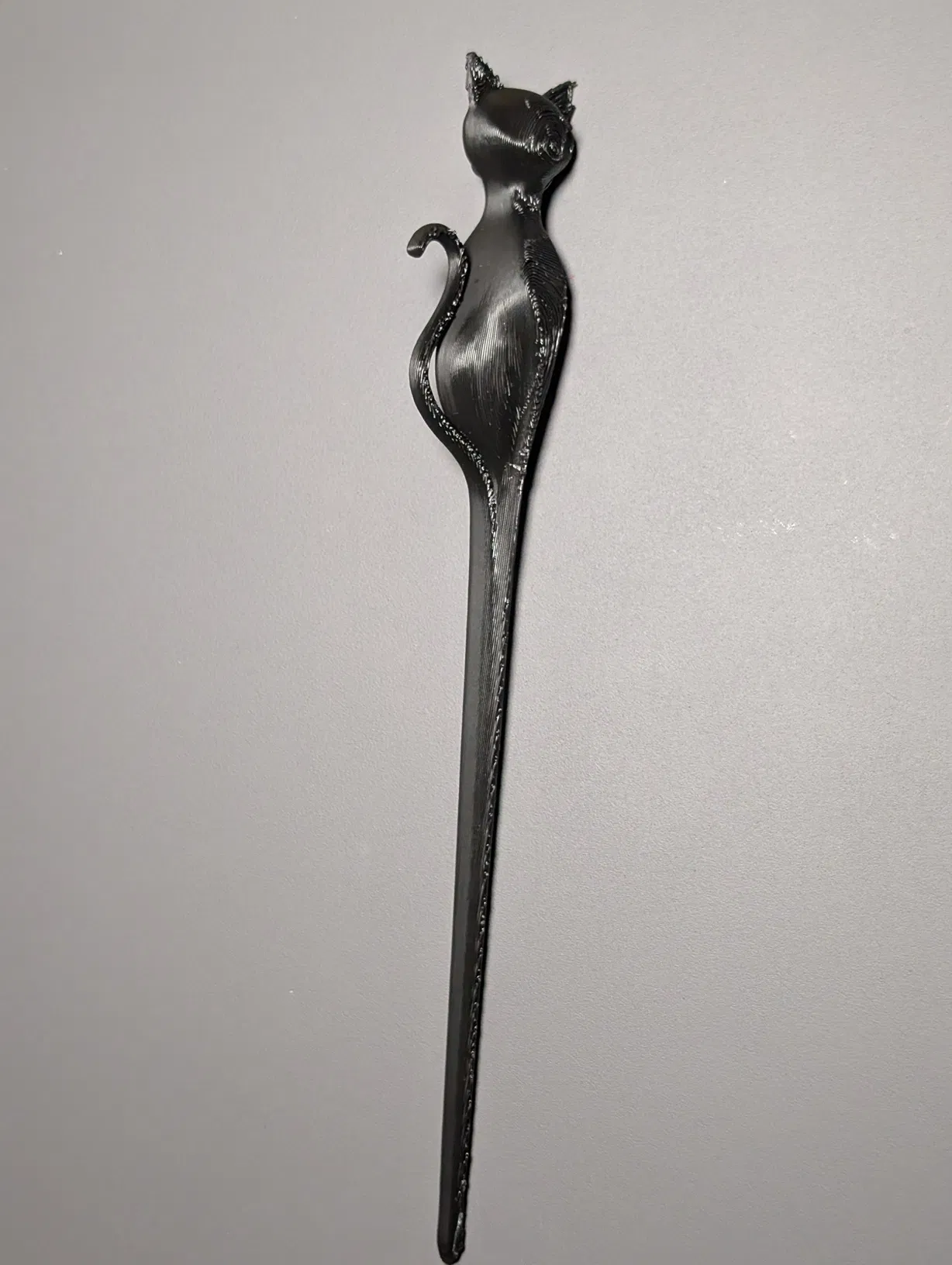 Đây là một chiếc kẹp tóc hình mèo đen đơn giản dành cho những bạn nào yêu mèo. Khi tháo phần support, các bạn nhớ cẩn thận kỹ ở khu vực cái đuôi nhé. Vì có khá nhiều support nên sản phẩm có thể cần thêm một chút hậu kỳ (post-processing), nhưng mặt ngoài nhìn chung vẫn khá đẹp và sắc nét.