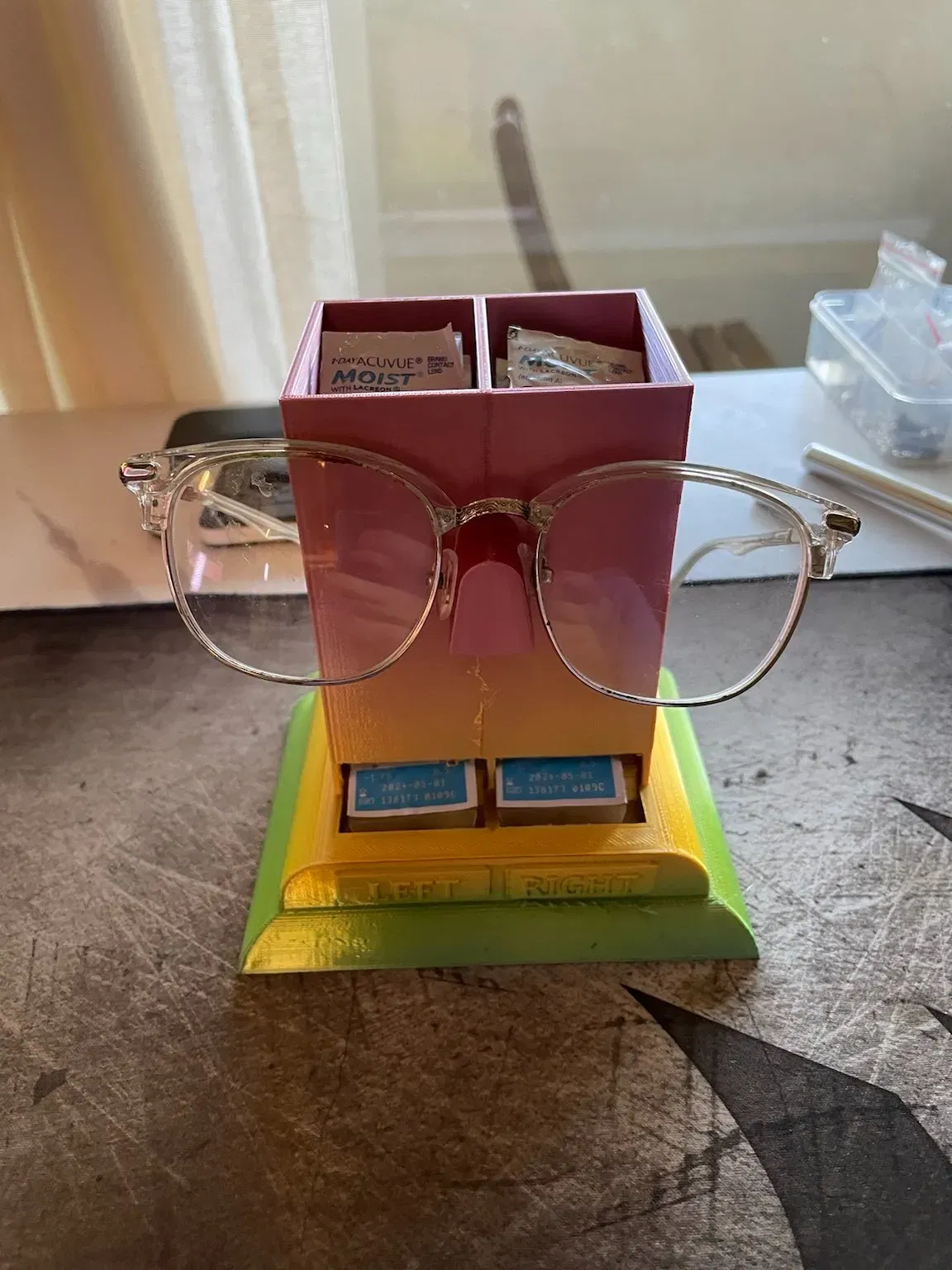 Nó bao gồm một giá đỡ kính để bạn có chỗ để đặt kính khi bạn lắp kính áp tròng.