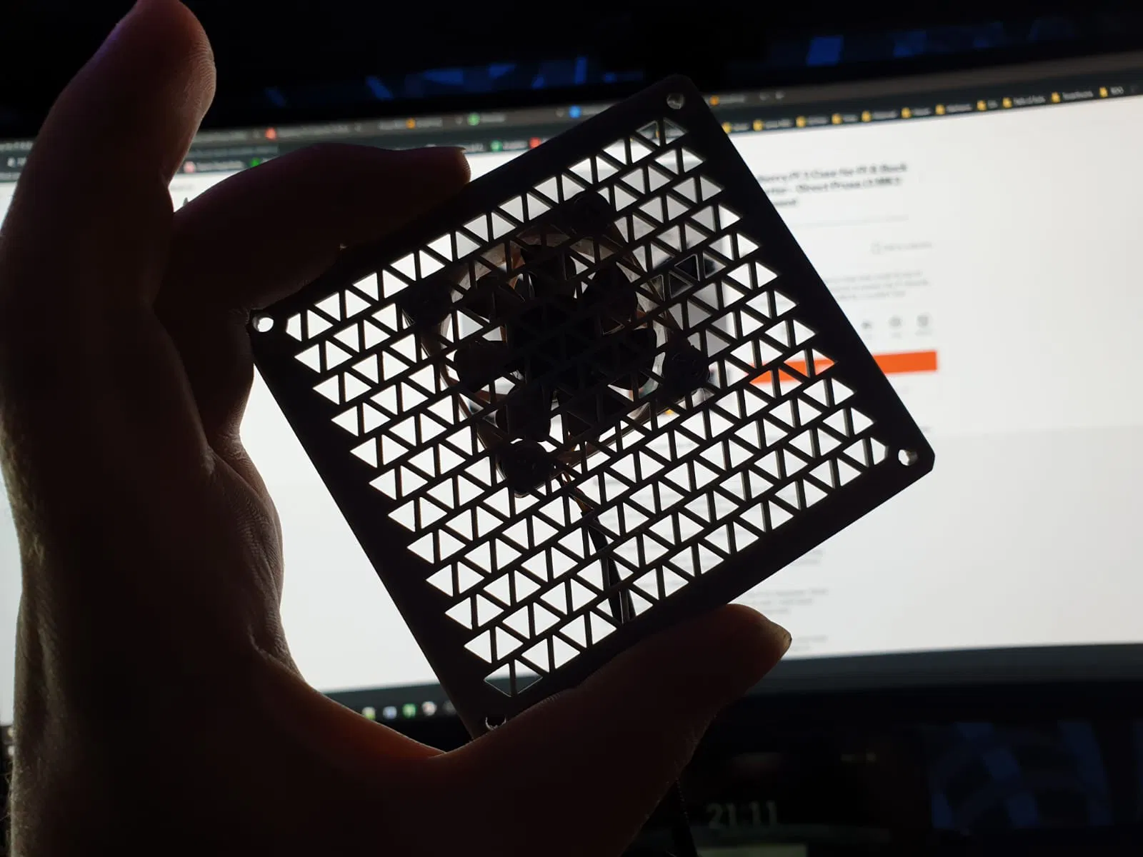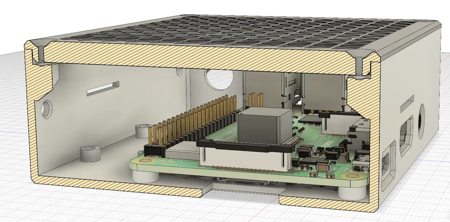 Mình đã tìm kiếm một chiếc vỏ bảo vệ Raspberry Pi có thể chứa vừa cả bo mạch Pi lẫn bộ hạ áp (Buck Converter) để cấp nguồn trực tiếp từ bộ nguồn của máy in MK3S. Vì không tìm được mẫu nào ưng ý nên mình quyết định tự thiết kế lấy.