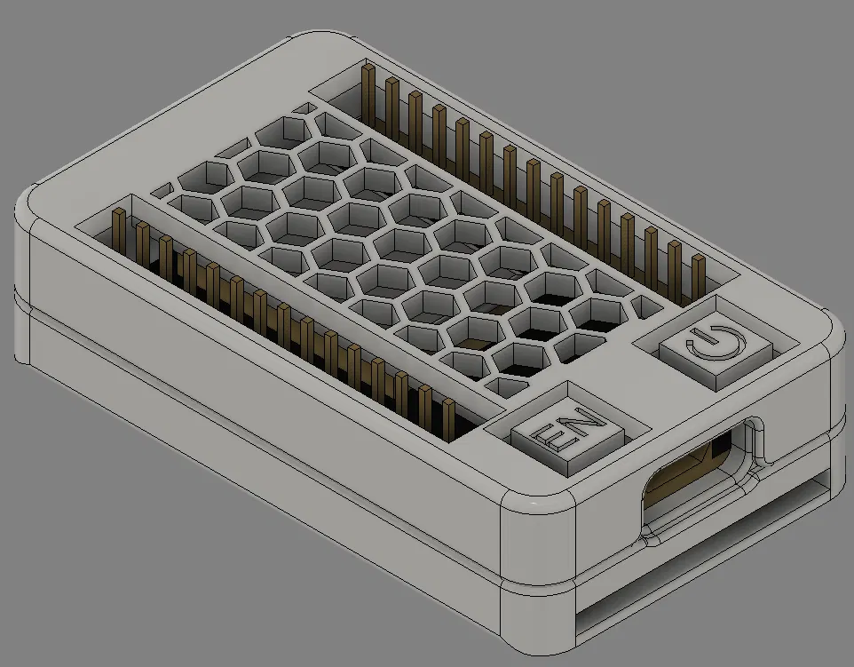 Vỏ hộp thiết kế dạng lắp ghép (press fit) cho ESP WROOM 32 devkit, tối ưu khi hàn chân pin hướng lên. Sản phẩm đi kèm nút nhấn tích hợp, dễ dàng in ấn với độ phân giải từ 0.12-0.2mm.
