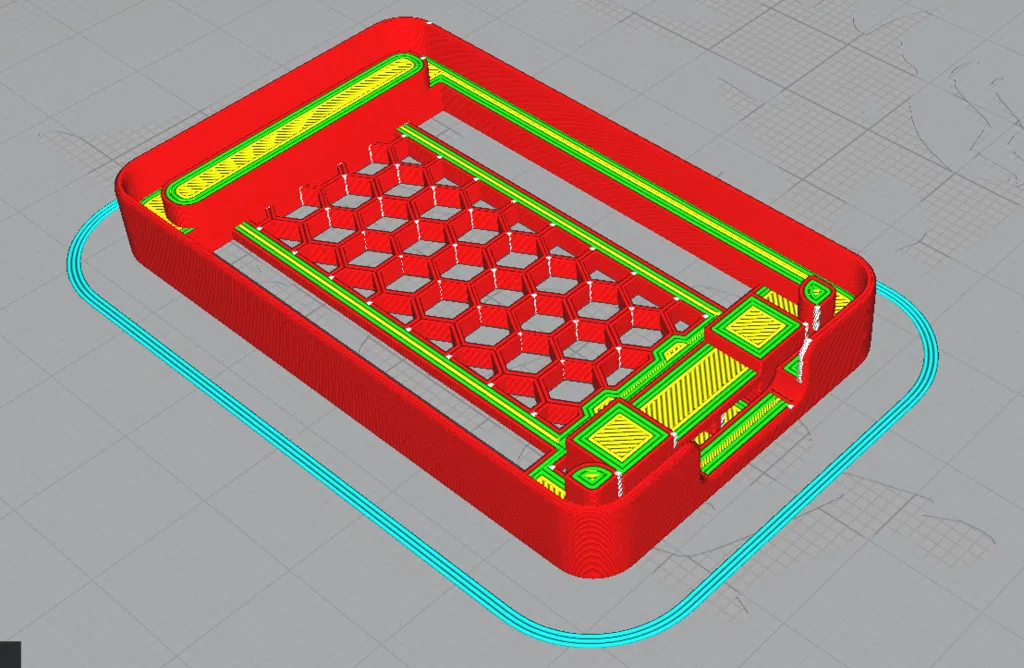 Phần nắp (Lid) được thiết kế để in với mặt trên úp xuống, giúp các nút nhấn được in trực tiếp lên bàn in.