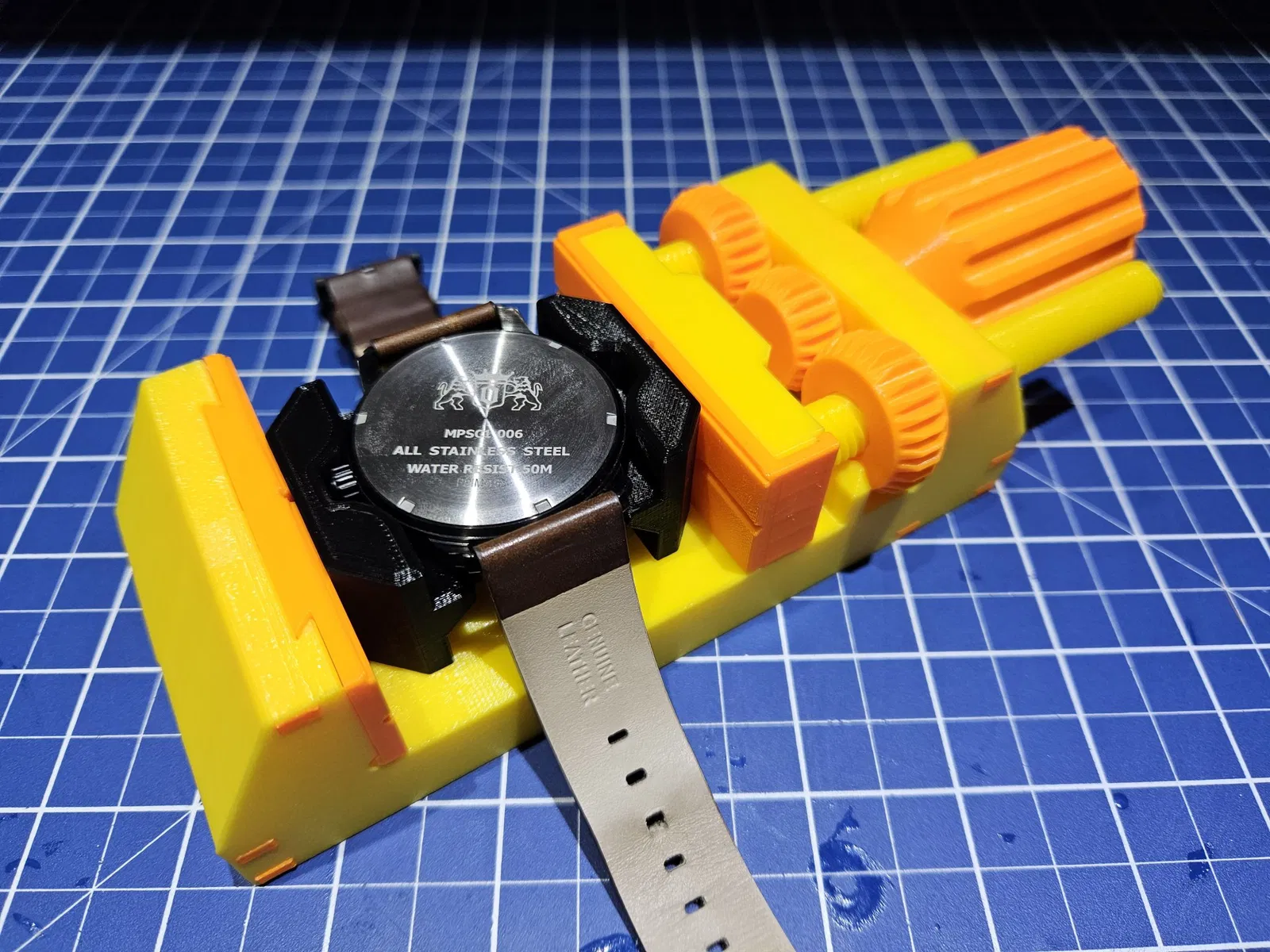 Một bộ chuyển đổi/hỗ trợ để sử dụng trên một cái kẹp bàn cho đồng hồ của bạn. Giúp trong việc thay pin.