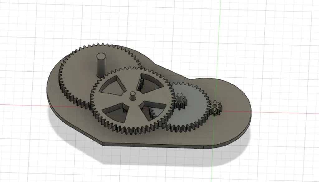 Đây là một bộ hộp số đơn giản có tỉ số truyền khoảng 130:1 được thiết kế cho động cơ DC. Lưu ý nên giảm tốc độ in xuống 40mm/s đối với các bánh răng nhỏ để đảm bảo độ chính xác khi lắp ráp.
