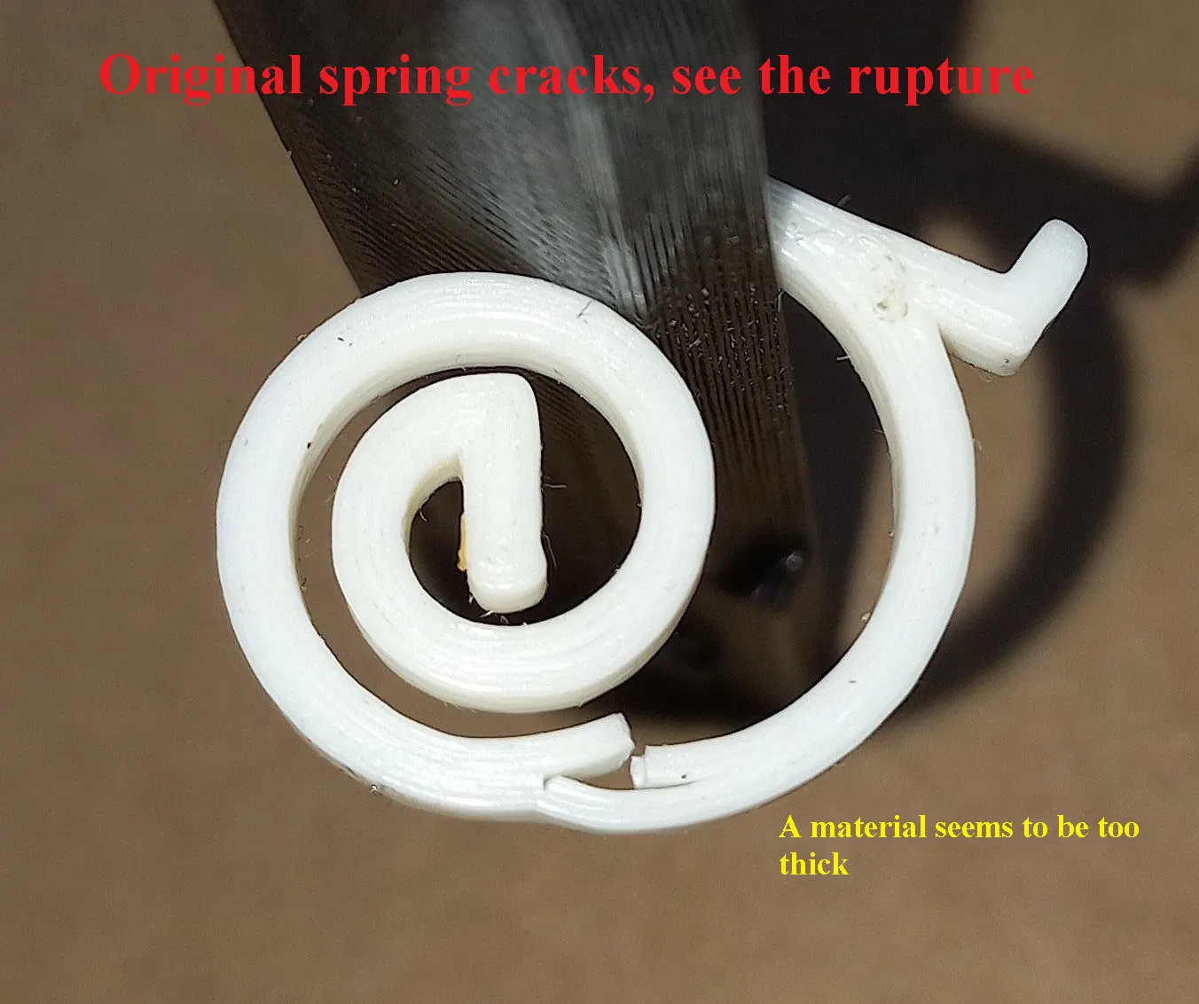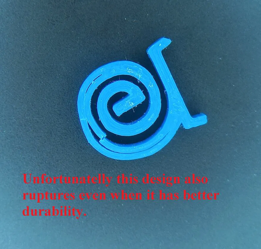 Sẽ có vấn đề nếu bạn muốn tạo ra một chiếc lò xo cứng cáp hơn. Độ dày vật liệu làm cho lò xo mạnh mẽ hơn, nhưng lại rất dễ bị nứt. Tuy nhiên, mình đã thử nghiệm với chất liệu PC Nylon và thấy không ổn lắm. Mặc dù Nylon có độ bền cao hơn nhưng lại mềm hơn, dẫn đến việc lò xo không đủ độ cứng cần thiết.