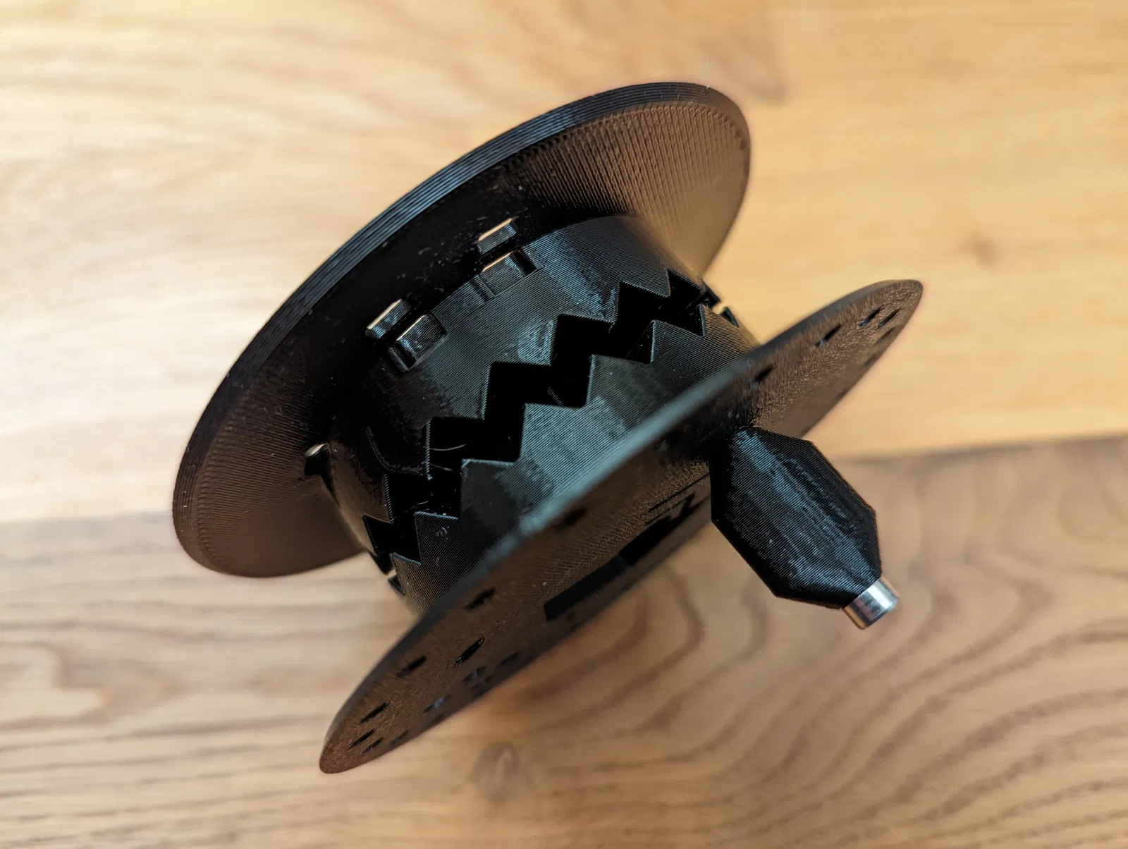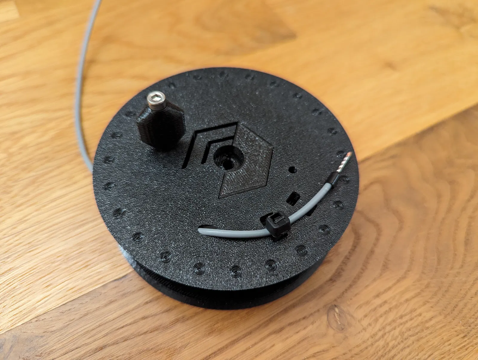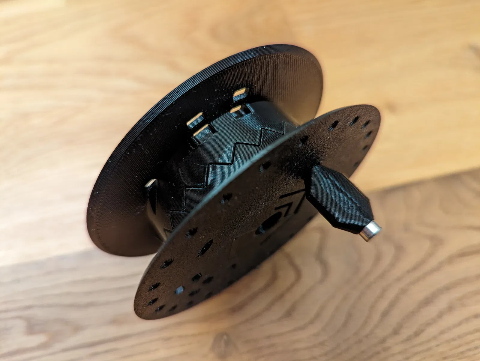 Cuộn dây này bao gồm hai phần giống hệt nhau và một nắp đậy. Lô cuốn có tay quay giúp việc thu dây dễ dàng hơn và có các khía để ngăn việc tự xoay ngoài ý muốn. Tệp nguồn cho phép bạn thay đổi tham số hầu hết các kích thước cơ bản. Tốt nhất là bạn nên in mô hình này bằng vật liệu PETG vì nó có độ dẻo dai phù hợp.
