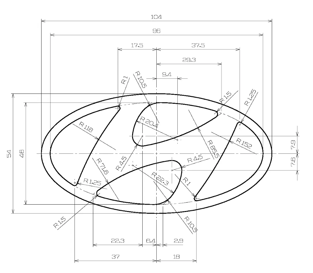Tui không tìm được mẫu logo Hyundai nào có chất lượng ưng ý nên đã tự vẽ lại dựa trên bản vẽ chính thức mà tui tìm được trên mạng. Tui rất hài lòng với kết quả này.