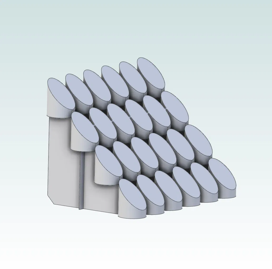 Nếu bạn muốn tự thiết kế phiên bản của riêng mình, hãy: 1) tạo vài hình trụ lệch nhau theo hình bậc thang trên mặt phẳng 45°. 2) thêm một vách ngăn ‘thẳng đứng’ trên mặt phẳng XY nối từ hình trụ trên cùng xuống dưới cùng để kết nối chúng thành một đường viền vase mode duy nhất. 3) nhân bản hình dạng đó theo độ dài mong muốn và nối các khối lại với nhau bằng vách ngăn dọc theo trục ‘nằm ngang’ của mặt phẳng XY. 4) cắt chéo một góc 45° dọc theo các hình trụ, tạo ra một mặt phẳng liên tục. Nếu thực hiện đúng, phần lớn mô hình sẽ in được ở chế độ vase mode khi đặt nằm trên mặt cắt đó, chỉ có phần chân bên trên là sẽ in dạng các đảo nhỏ.