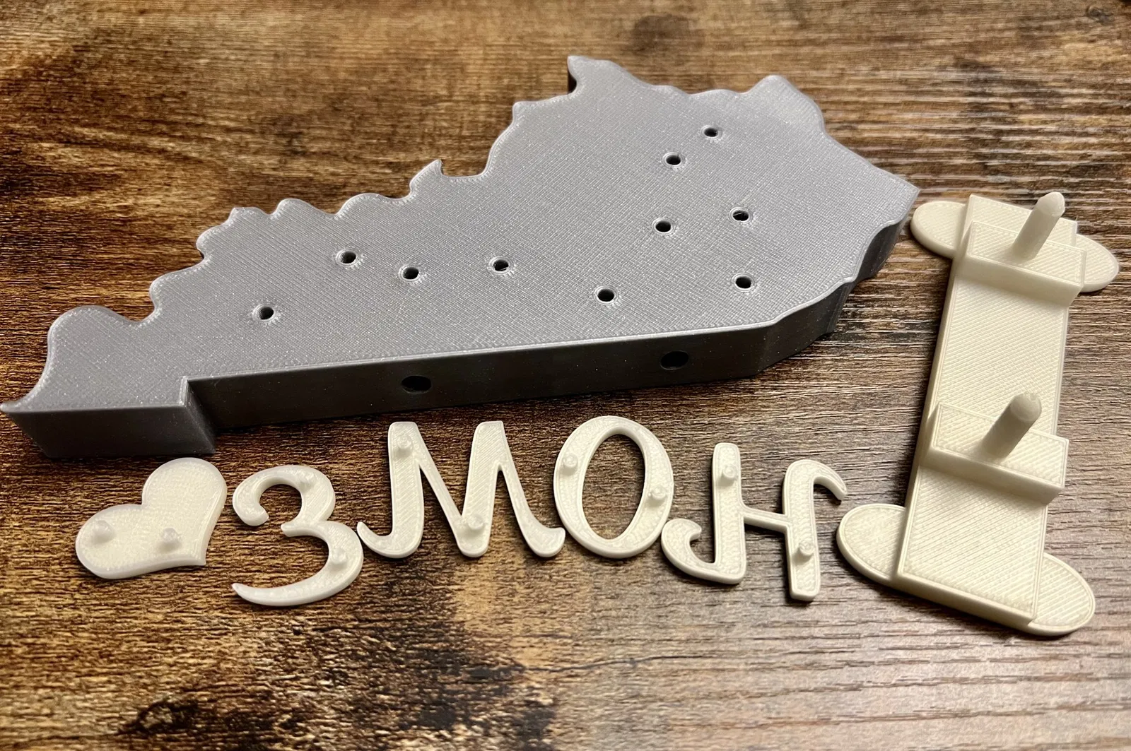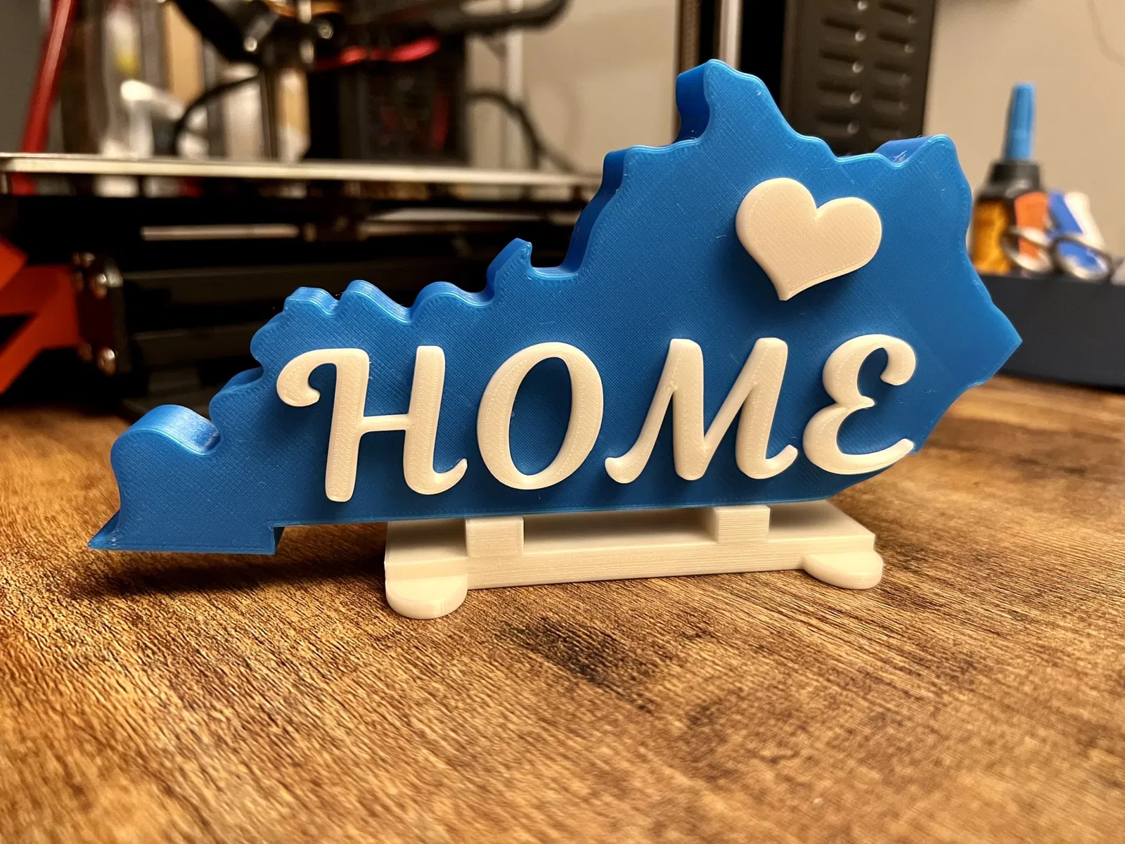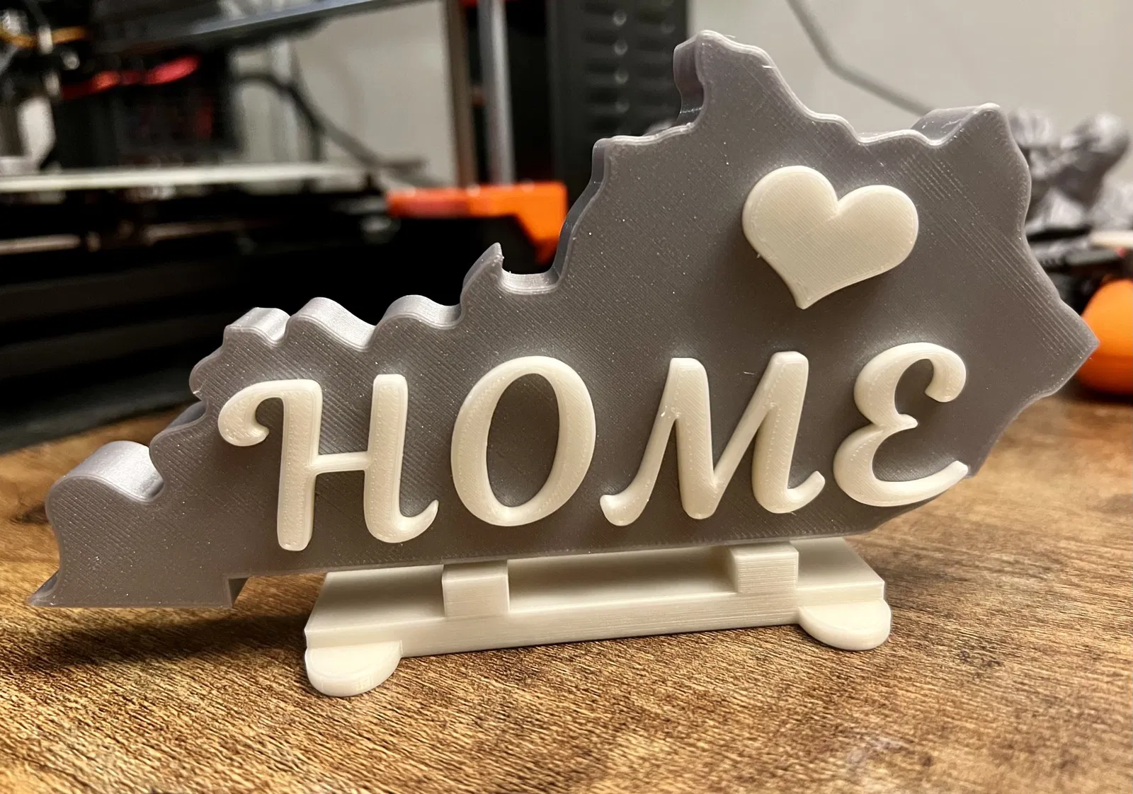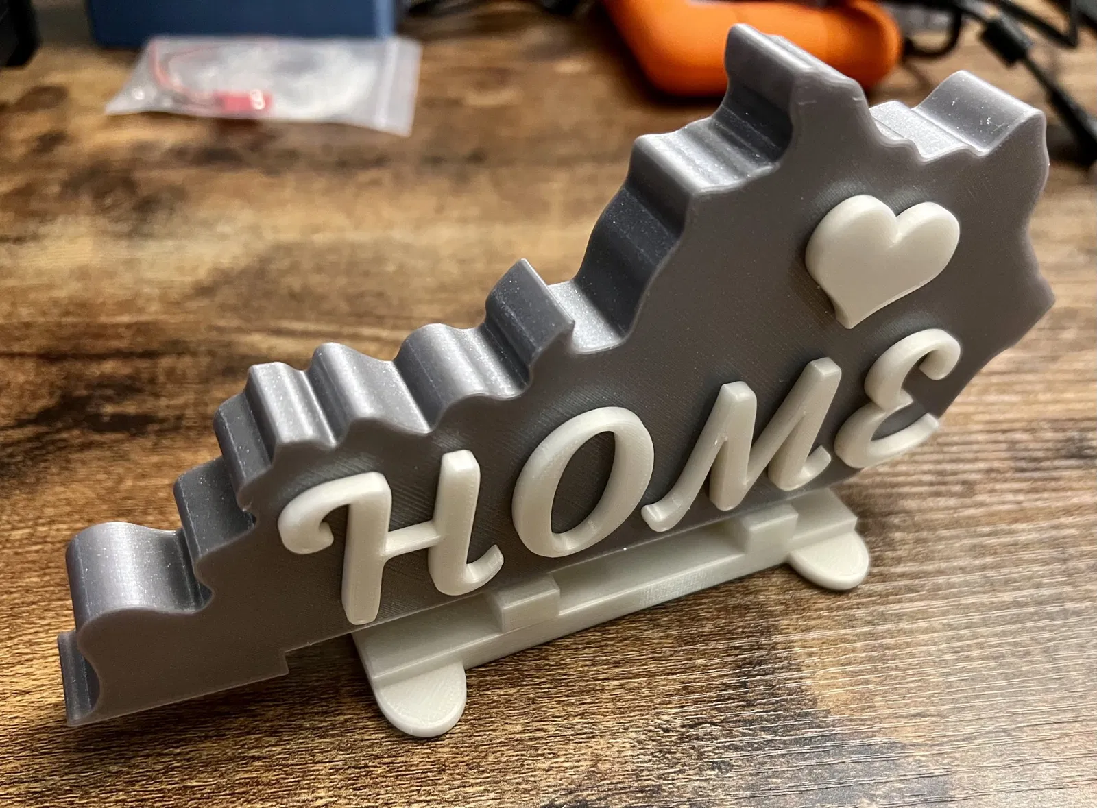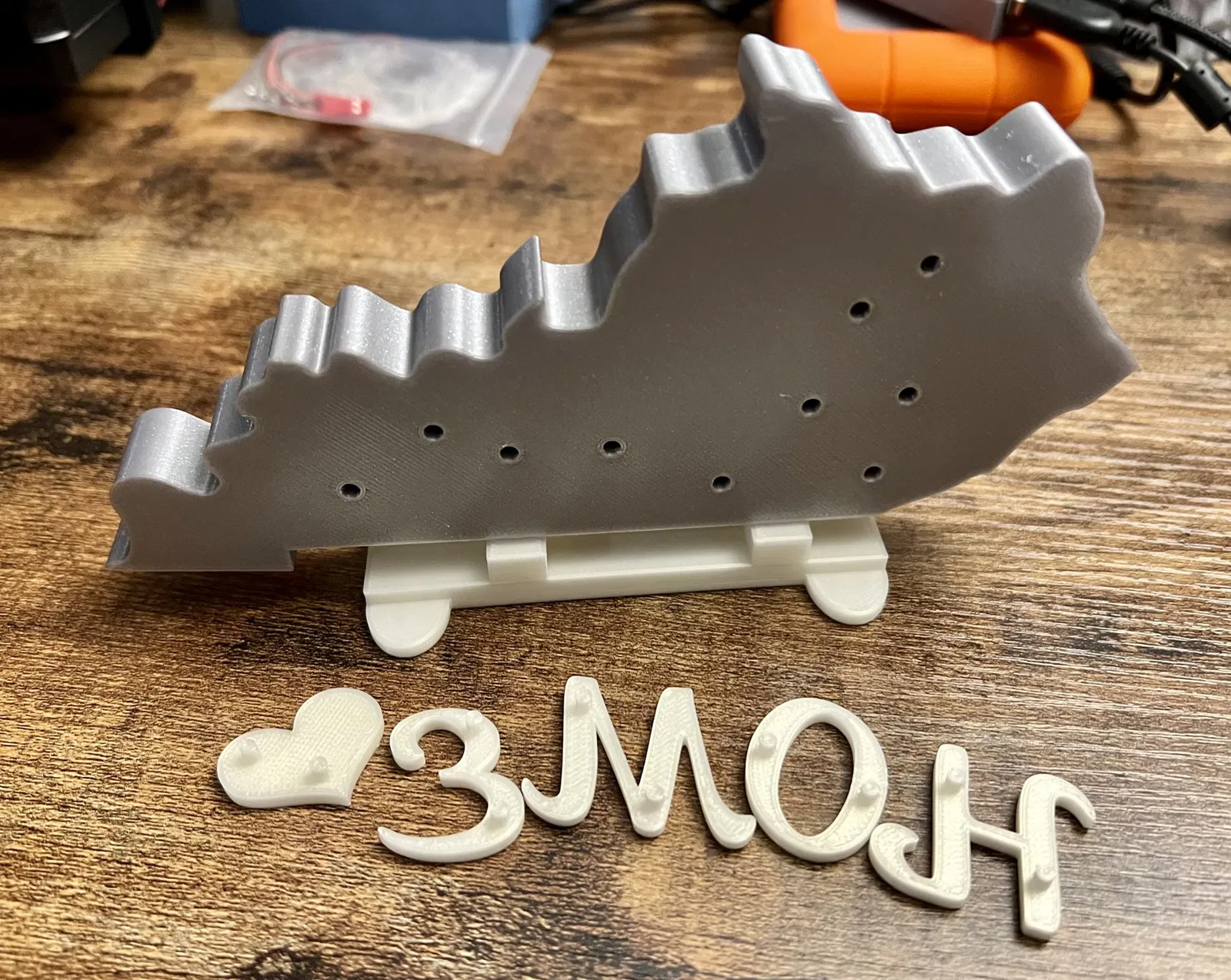 Tôi đã in các chữ cái và giá đỡ trên một máy in thứ hai sử dụng prusament trắng, vì vậy các chữ cái sẽ nổi bật mà không cần phải tạm dừng in để thay đổi filament trên máy mini+ của tôi (ôi!). Thật dễ dàng để có cái này nổi bật với các màu khác nhau.
