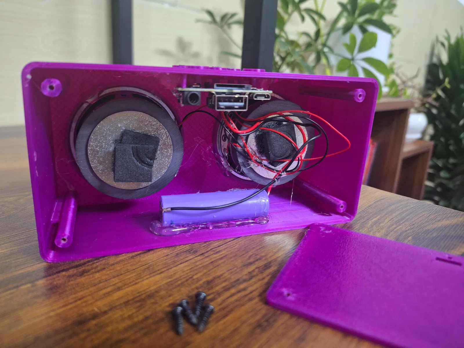 Quá trình lắp ráp khá đơn giản và không đòi hỏi quá nhiều kỹ thuật phức tạp. Bạn có thể dễ dàng cố định mô-đun điều khiển, cặp loa 2-inch và viên pin Lithium vào bên trong khoang chứa được thiết kế riêng. Việc sử dụng ốc vít để cố định nắp sau giúp bạn dễ dàng tháo lắp nếu cần bảo trì hoặc thay thế linh kiện sau này. Đây chắc chắn là một dự án thú vị để bạn thực hành kỹ năng in 3D và DIY thiết bị âm thanh tại nhà.