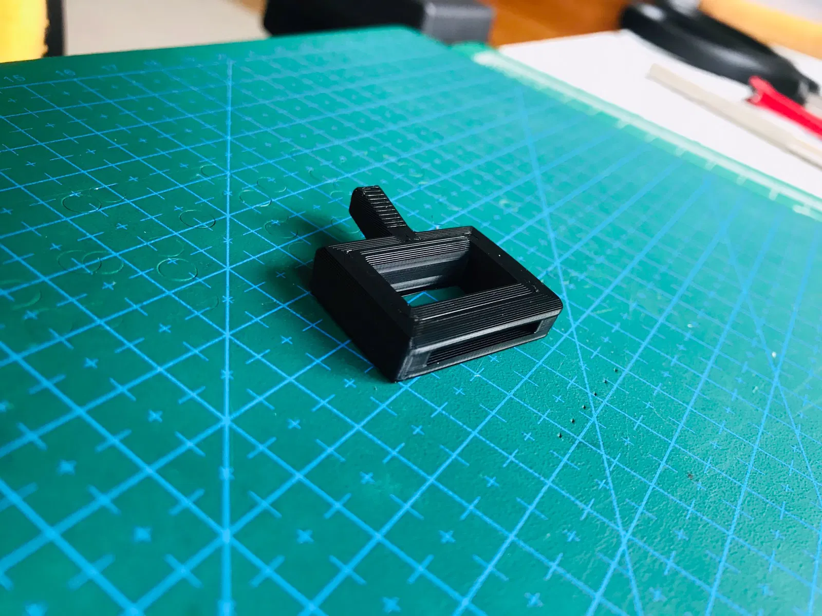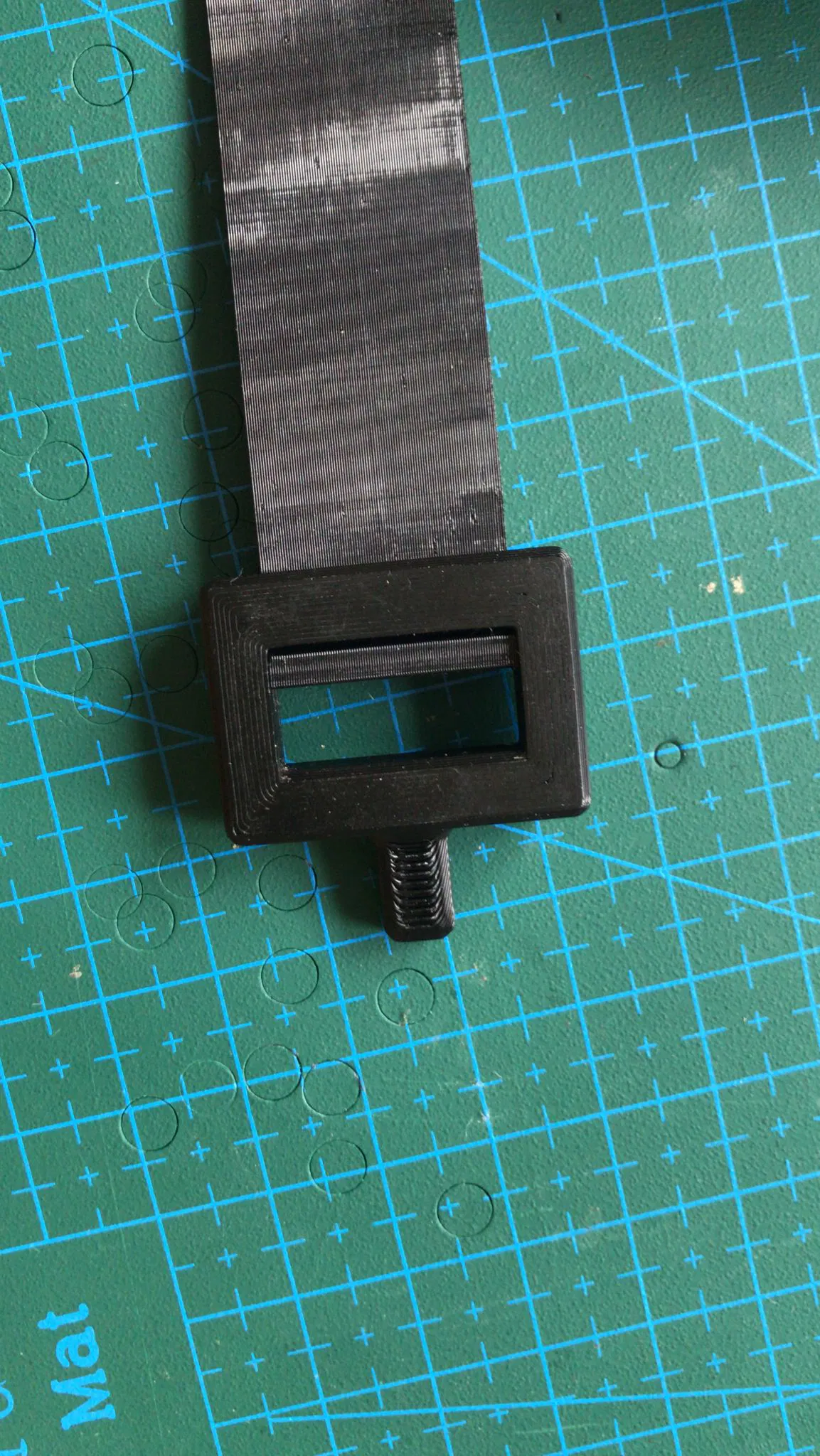 Sợi dây không đi kèm lỗ đục sẵn. Đây là lựa chọn thiết kế cá nhân của mình, vì kết quả thử nghiệm ban đầu với các lỗ đục sẵn cho ra kết quả rất tệ. Lý do là mình sử dụng máy in Bowden extruder, loại này không xử lý tốt các sự kiện rút nhựa (retraction) liên tục, nhưng lại làm rất tốt việc đùn nhựa liên tục cho một sợi dây dài. Mình đã dùng dụng cụ đục lỗ cầm tay để tạo lỗ sau khi in, chỉ mất khoảng 2 phút và cho bề mặt rất đẹp. Mình sử dụng lỗ 4.5mm trong các bức ảnh. Dây đeo có một đường kẻ trung tâm rất tinh tế giúp bạn căn chỉnh lỗ chính xác hơn.