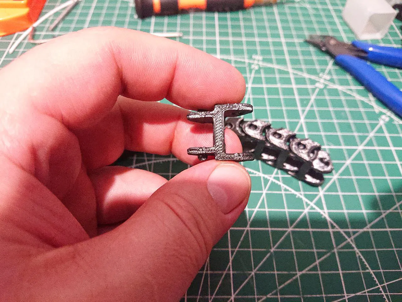 Mình đã thử in qua rất nhiều mẫu khác nhau nhưng tất cả đều có vài nhược điểm, hoặc là in khó (bám dính kém, phần nhô ra quá lớn, v.v.), hoặc là kết cấu không được ưng ý lắm. Mình đã tự thiết kế phiên bản riêng để khắc phục những vấn đề đó. Mẫu này in rất dễ, độ bám dính vào bàn in cực tốt, không có các phần nhô ra hay góc treo quá khó. Ngoài ra, mình cũng đã tối giản kết cấu để tiết kiệm nhựa nhất có thể. Mình khuyến khích các bạn nên in với phần mặt cắt hướng xuống dưới, các góc vát trên mô hình đã được thiết kế để hỗ trợ việc này.