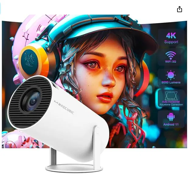Máy chiếu mini hỗ trợ 5G WiFi6 BT 5.0 Android 11, máy chiếu di động hỗ trợ 4K 1080P, máy chiếu thông minh tự động chỉnh ngang, máy chiếu phim ngoài trời xoay 180°