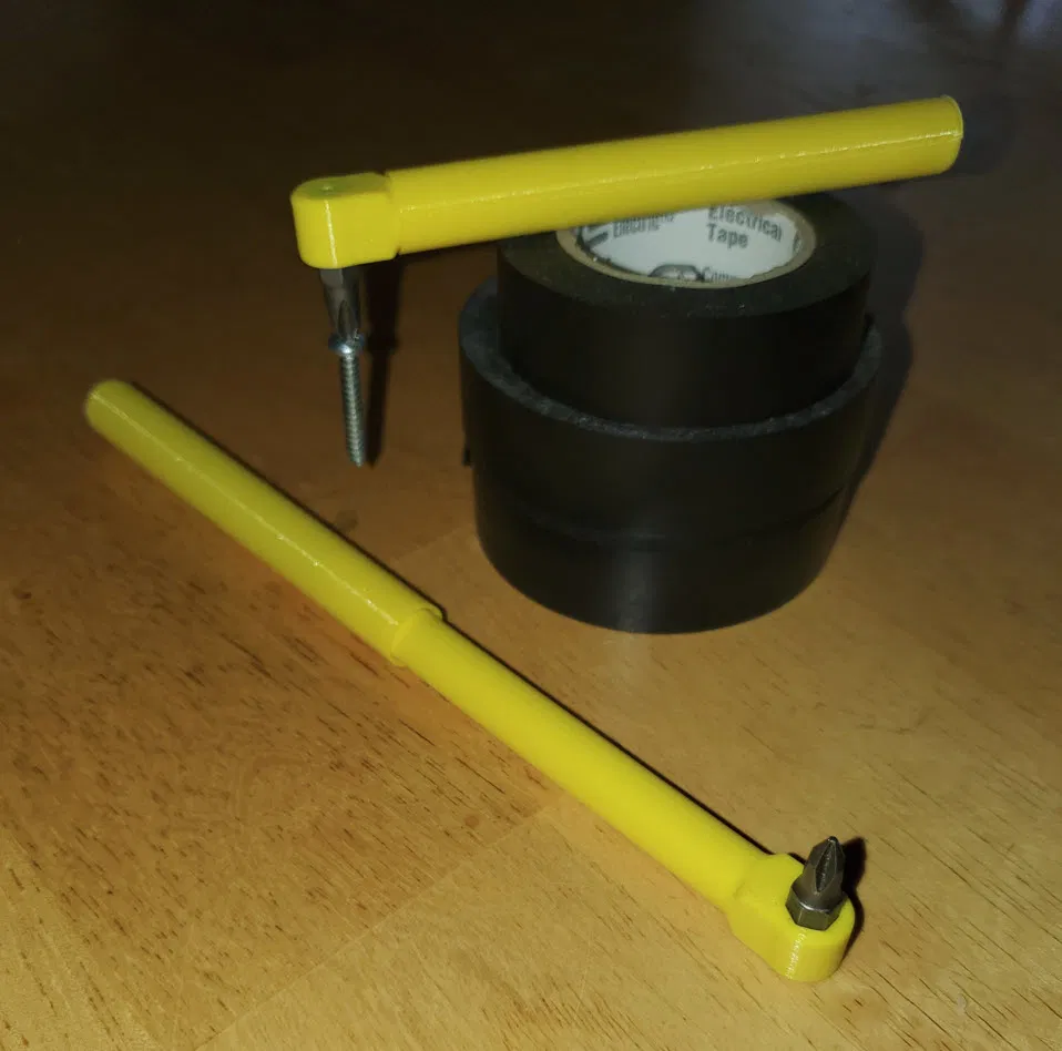 Một thiết kế tuốc nơ vít thông minh cho phép sử dụng các đầu vít tiêu chuẩn ở những vị trí khó với tới nhất. Với tay cầm tùy chỉnh độ dài và tùy chọn tích hợp nam châm, đây là công cụ hữu ích cho mọi bộ đồ nghề. Sản phẩm in không cần support.