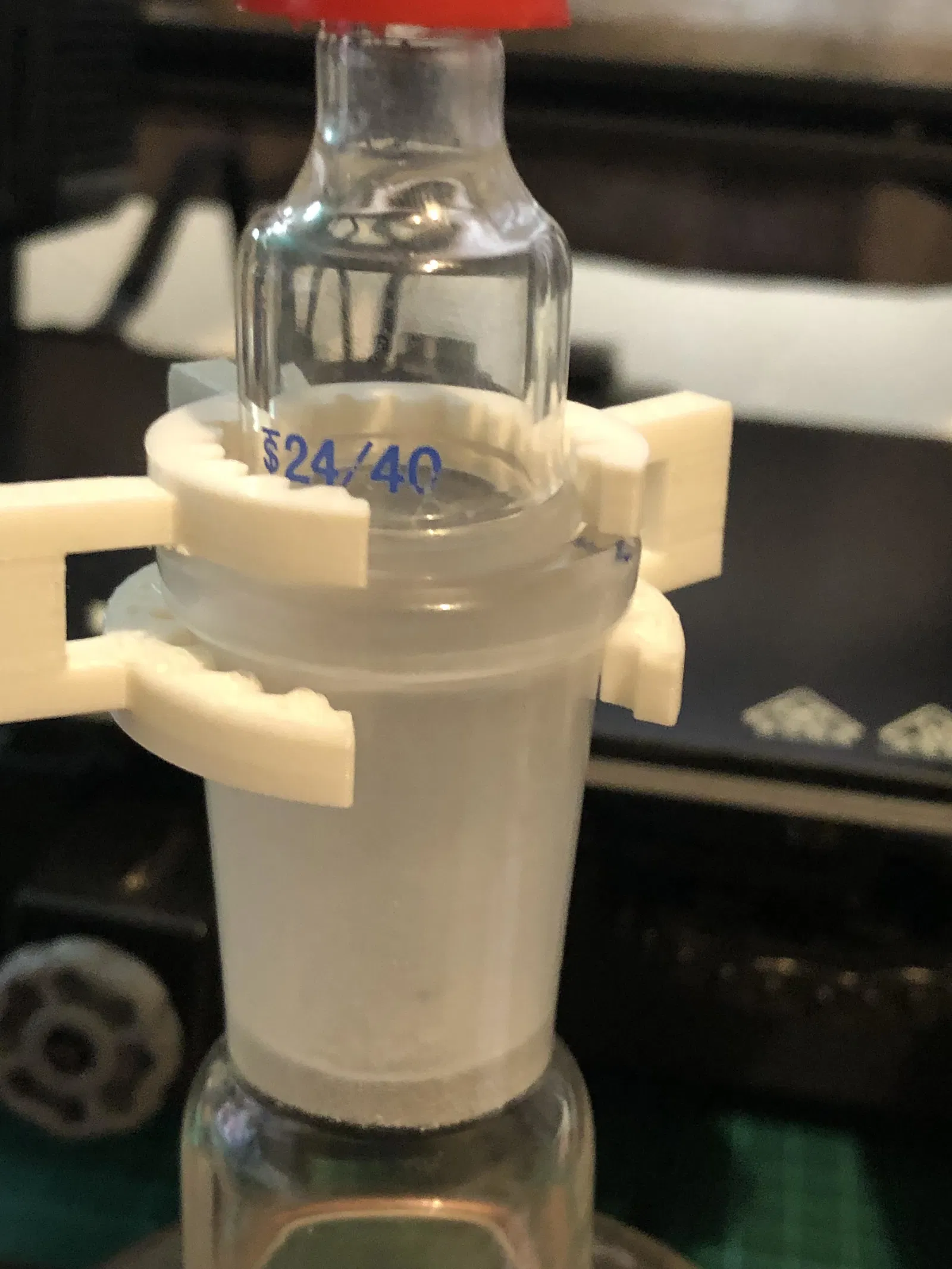 Mẫu kẹp giữ khớp nối 24/40 được in 3D. Lưu ý: Sản phẩm tự thiết kế nên cần thận trọng khi sử dụng. Cần in kèm support để đảm bảo kết cấu. Rất hoan nghênh mọi người remix và đóng góp ý kiến để hoàn thiện hơn.