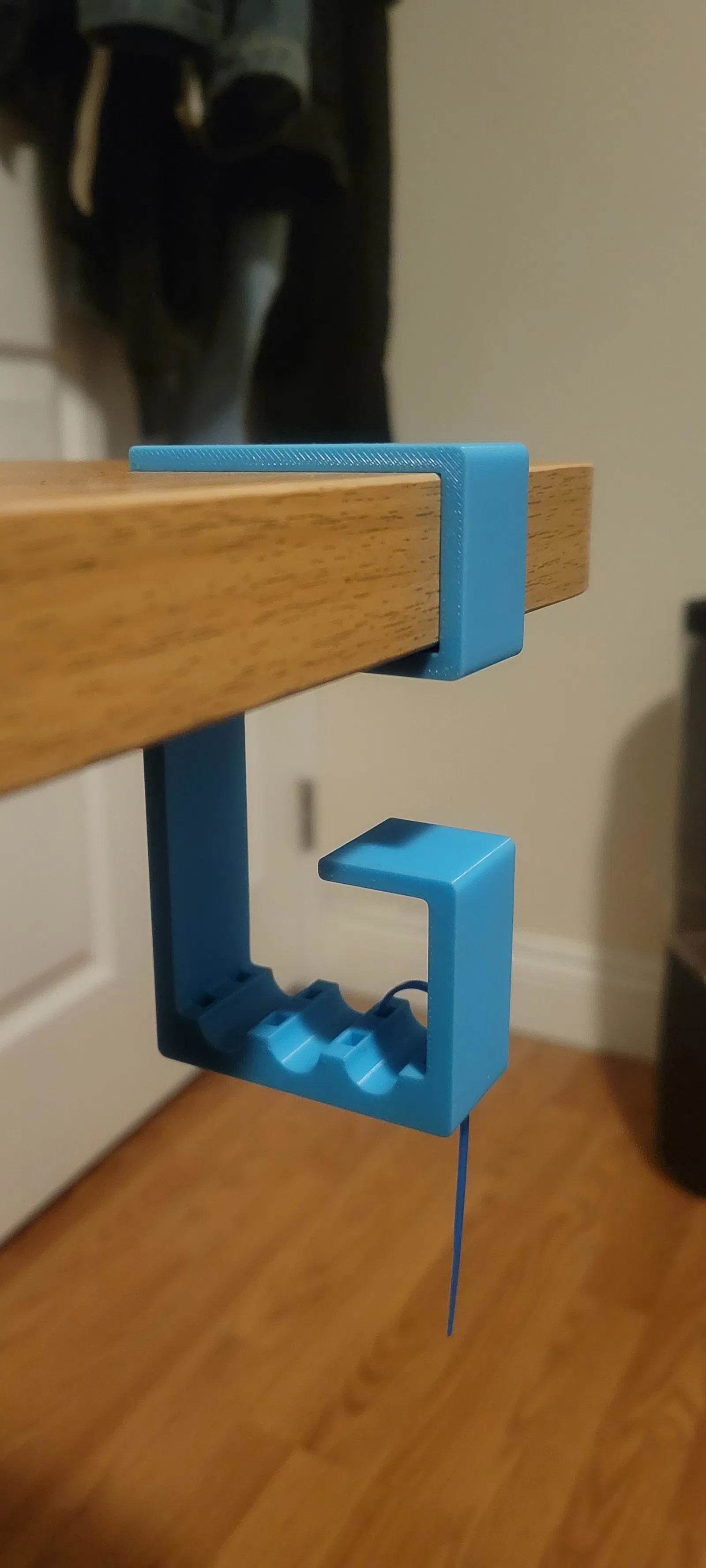 Ngàm kẹp và giá đỡ giúp đi dây gọn gàng dưới mặt bàn. Thiết kế tiện lợi với lỗ luồn dây rút, không cần khoan đục, tương thích với nhiều độ dày mặt bàn khác nhau từ 19mm đến 38mm.