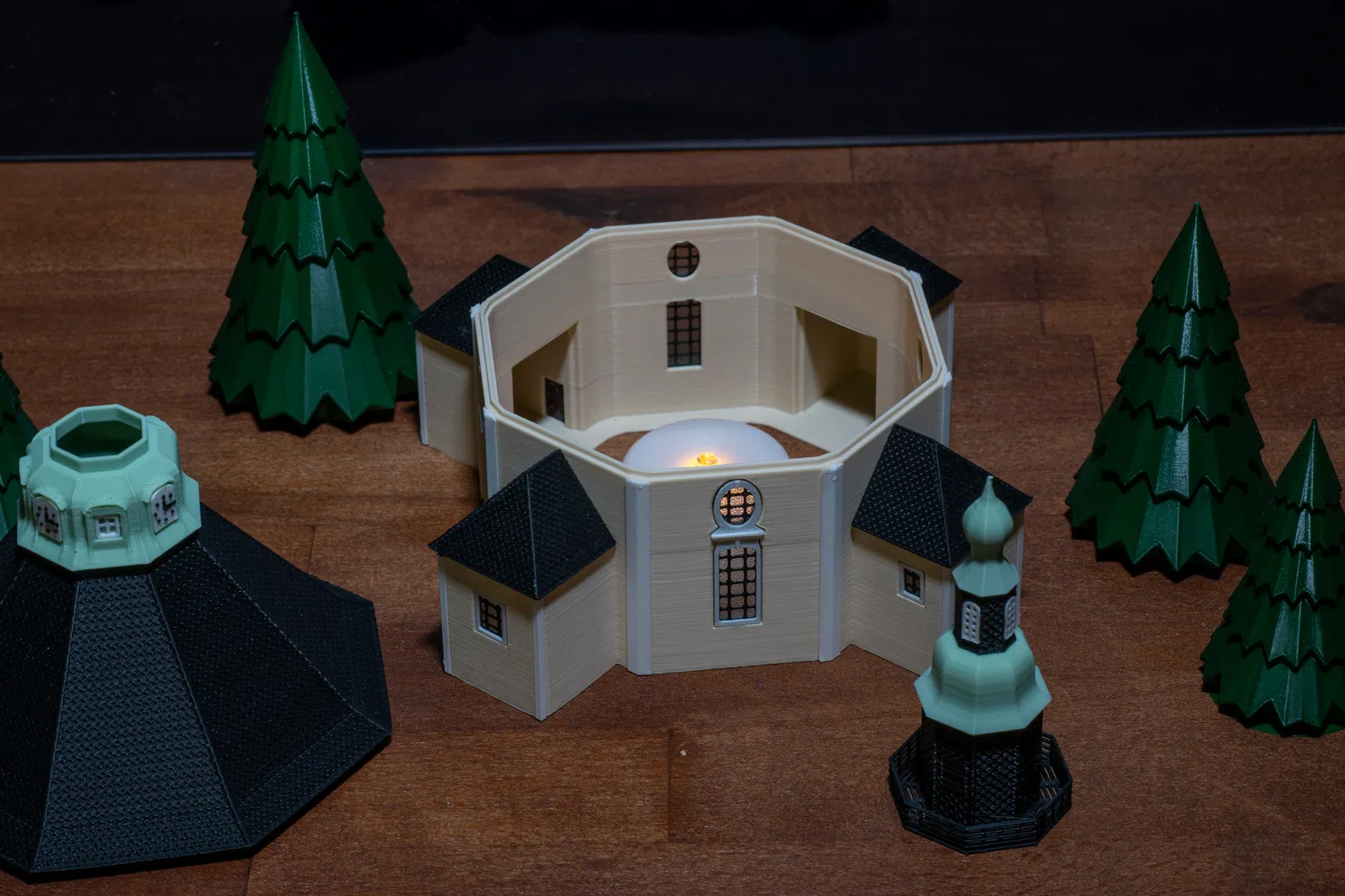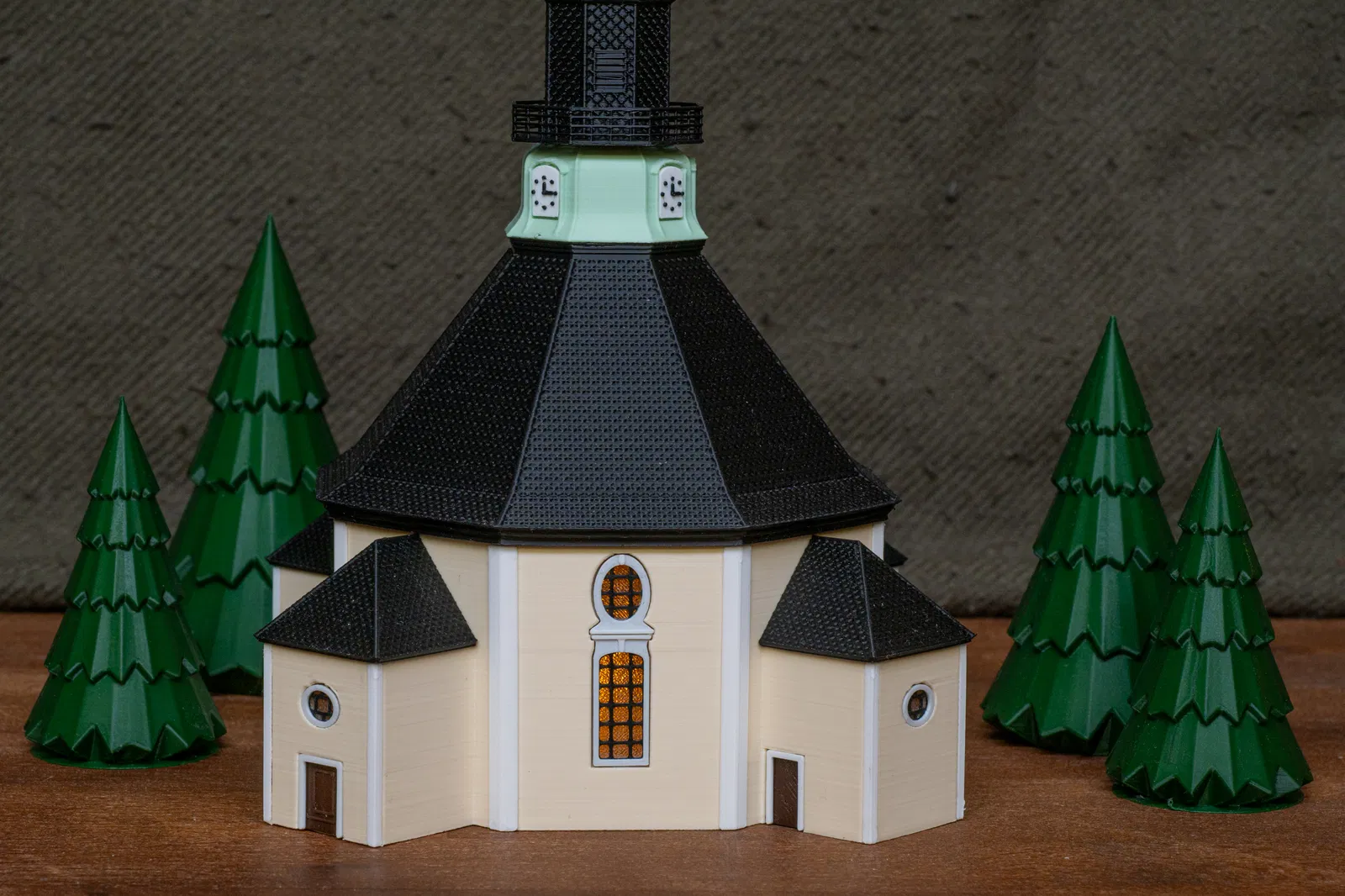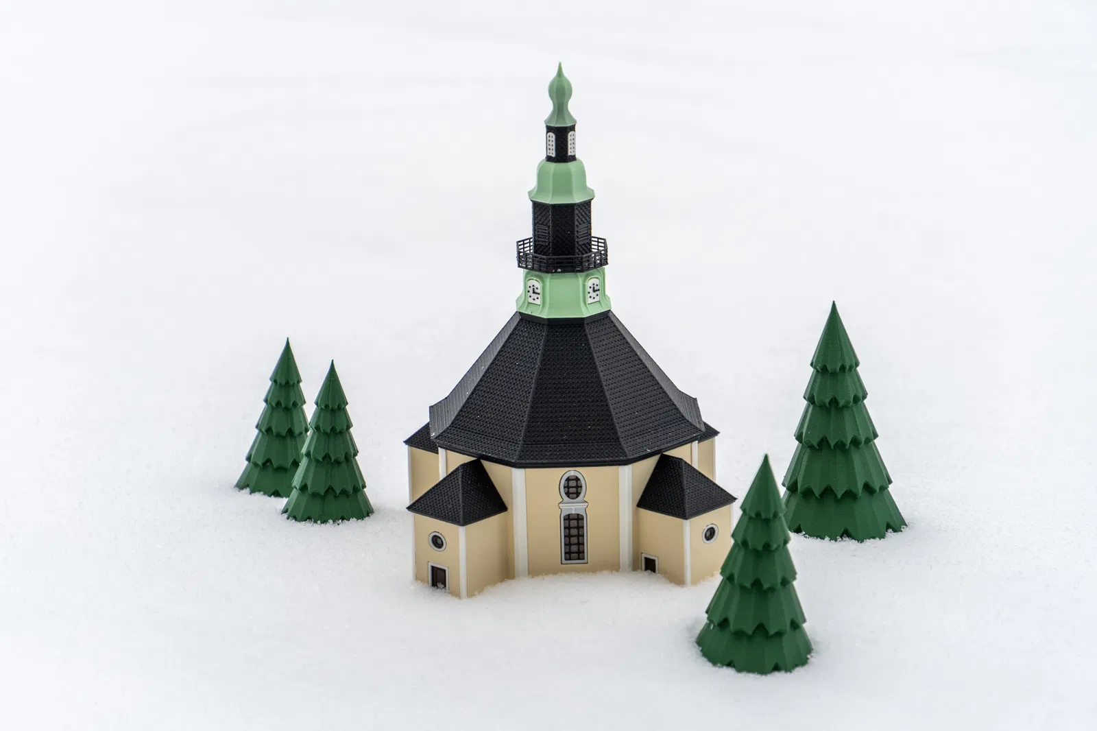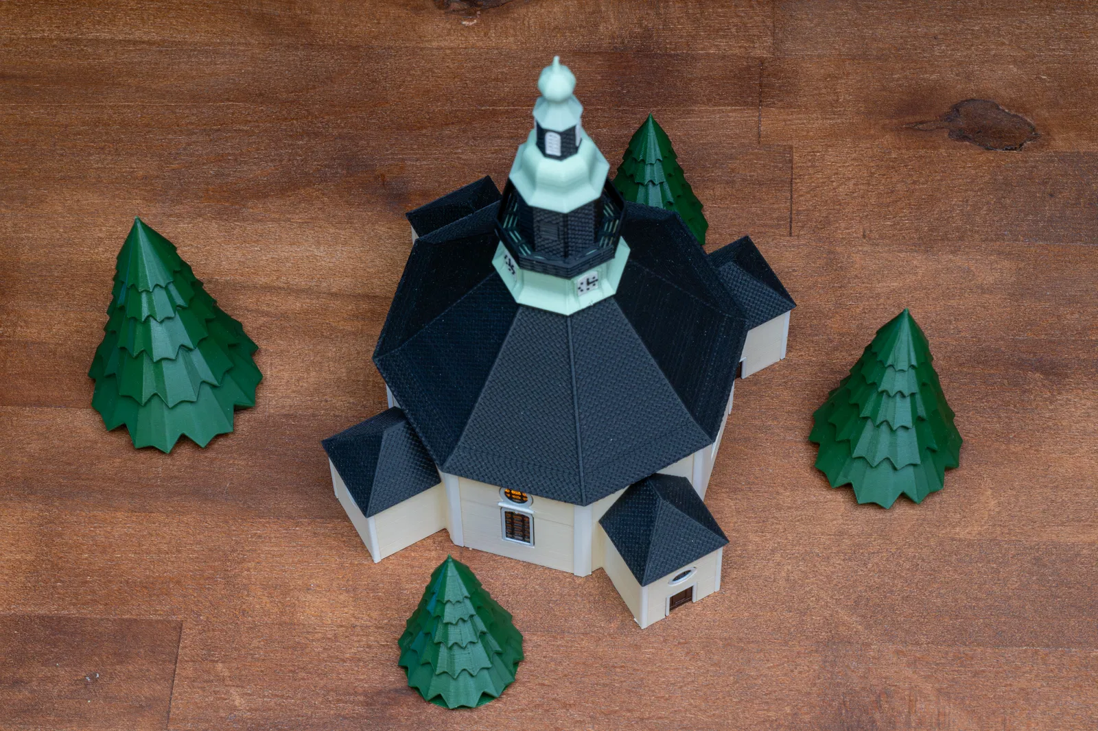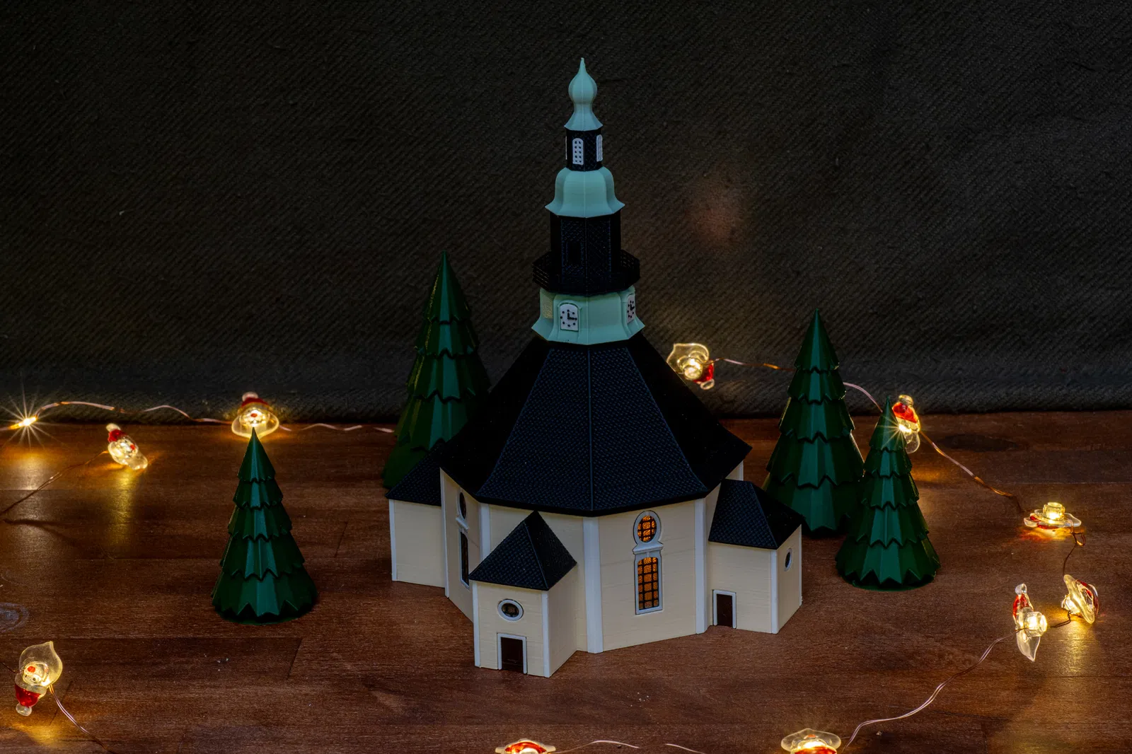 Mô hình này tái hiện lại Nhà thờ Seiffen, tên chính thức là Nhà thờ Núi Seiffen (Bergkirche Seiffen), một nhà thờ Tin Lành Luther tọa lạc tại thị trấn Seiffen, vùng Erzgebirge, bang Saxony, Đức. Đây là địa danh mang tính biểu tượng của thị trấn và là một chủ đề phổ biến trong nghệ thuật dân gian vùng Erzgebirge. Nhà thờ được xây dựng từ năm 1776 đến 1779 dựa trên bản thiết kế của Christian Gotthelf Reuther, lấy cảm hứng từ nhà thờ Frauenkirche ở Dresden. Nhà thờ này xuất hiện trong rất nhiều chủ đề trang trí Giáng sinh tại Erzgebirge và có mặt trong nhiều gia đình người Đức dưới nhiều hình thức khác nhau. Việc phối nhiều màu sắc được thực hiện thông qua kỹ thuật đổi màu filament. Cách này hoàn toàn áp dụng được trên mọi máy in vì sự thay đổi chỉ diễn ra theo từng lớp (layer). Cập nhật: Lưu ý rằng ở chế độ Arachne, các bậc thang dạng lưới không hiển thị rõ nét tại TopSegment. Mình vẫn phải chuyển sang chế độ Classic cho đến khi cập nhật phần mềm.