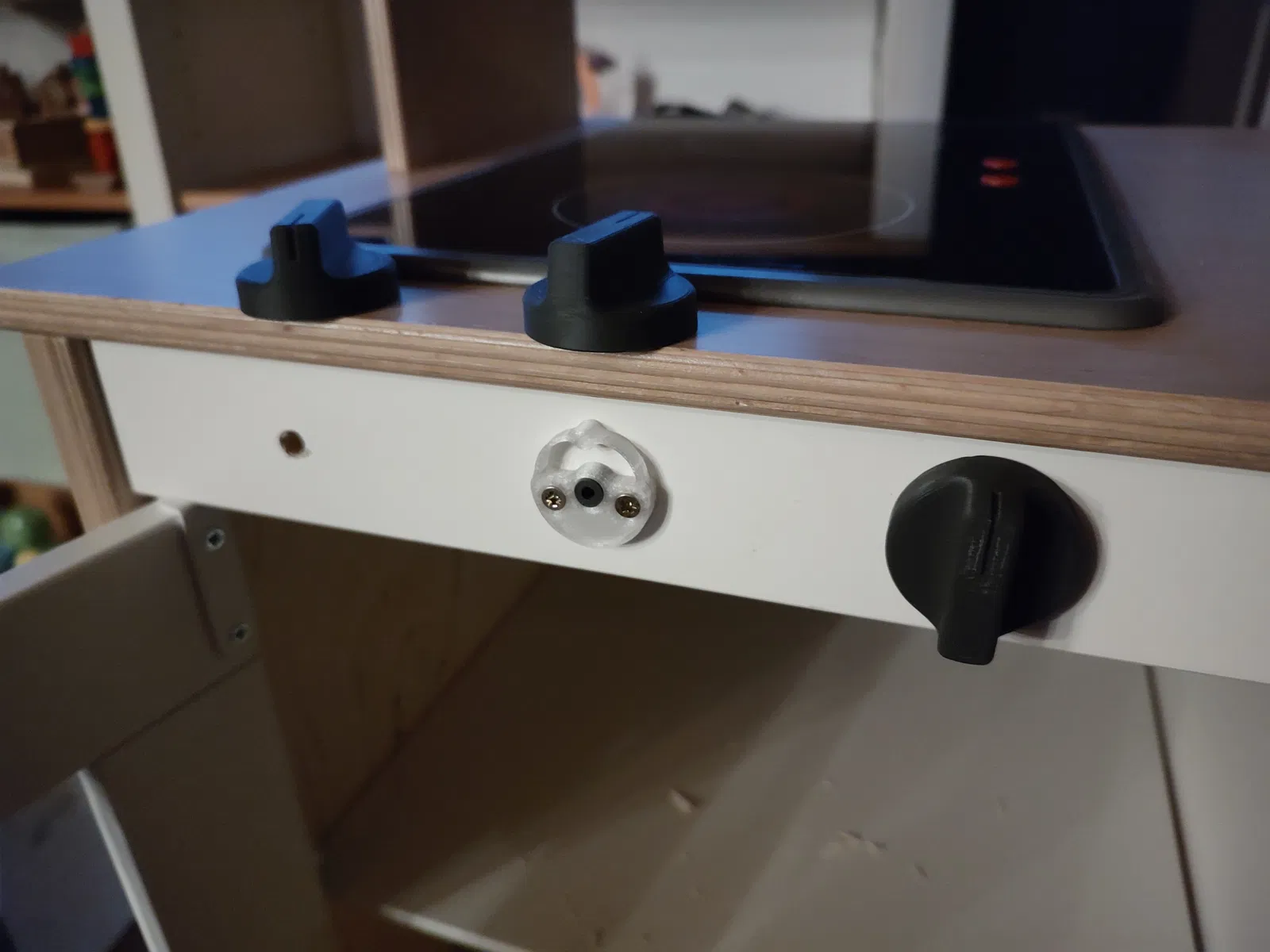 Các chi tiết này được thiết kế để vừa khít với bộ bếp IKEA Duktig. Nếu ván gỗ bếp của bạn dày hoặc mỏng hơn, bạn chỉ cần chỉnh lại tỉ lệ (scale) của ống lót. Mẫu đính kèm đang có độ dài là 18,6 mm.