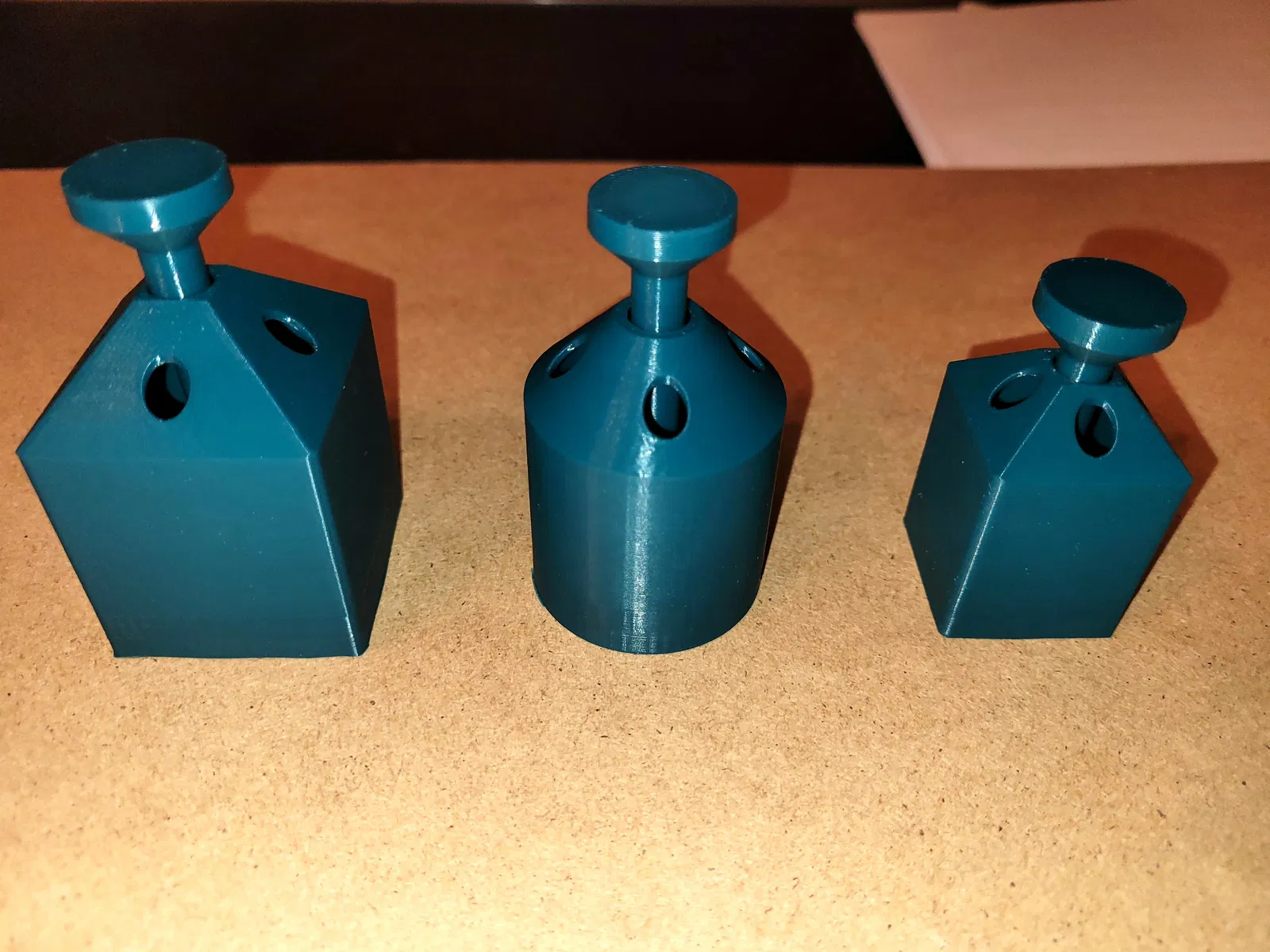 Các đường ren cho đầu tạo lỗ là chuẩn M4 và được in trực tiếp. Mình đã thiết kế ba phiên bản đầu tạo lỗ với trục ren lần lượt là 4.0, 3.9, 3.8 và 3.7. Với trường hợp của mình, loại trục ren 3.8mm là vừa khít nhất. Nếu bạn gặp khó khăn với phần này, trước tiên hãy thử vặn một con ốc M4 kim loại bình thường vào khuôn dập để làm sạch ren.