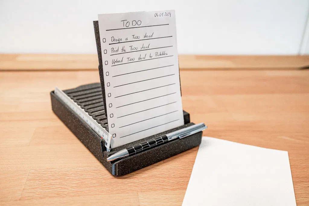 Bạn có thể tùy chỉnh mẫu thiết kế này trên Onshape tại đây: A6 ToDo Stand.