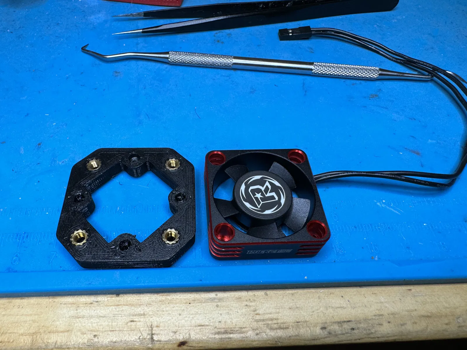 Để gắn ngàm này vào thân Walksnail, mình dùng 4 ốc 6mm có sẵn đi kèm với Walksnail. Còn để gắn quạt vào ngàm, mình dùng 4 ốc M3x12mm.