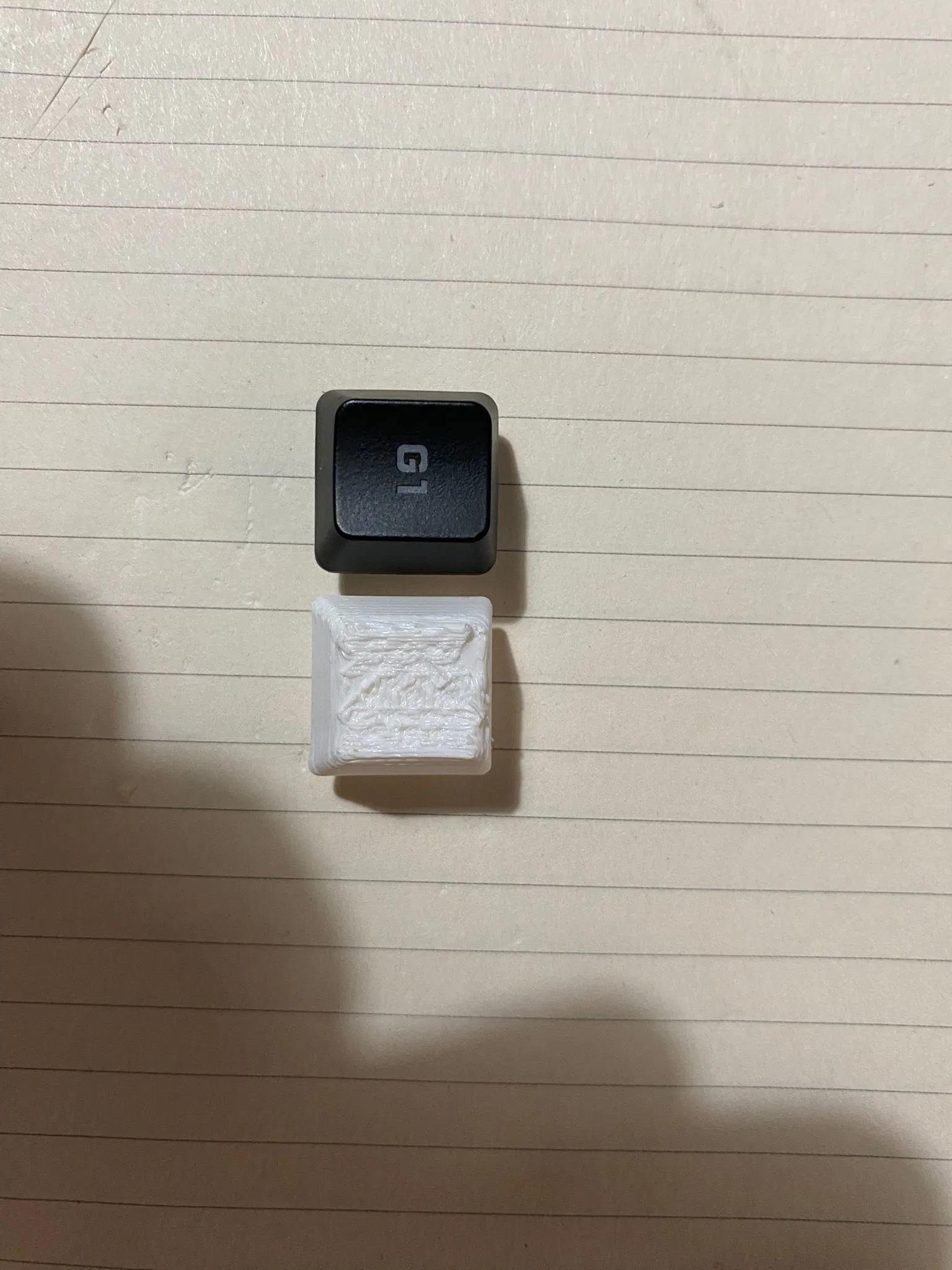 Đây là mẫu nút G1 của bàn phím Corsair K55. Bạn có thể thoải mái thiết kế thêm bất cứ thứ gì lên phía trên nút này. Mẫu này là bản sao chính xác của nút gốc nhưng đã được tinh chỉnh một vài chỗ để phù hợp hơn với việc in 3D. Hiện tại, các ngàm nhỏ ở hai bên vẫn còn khá dễ gãy nếu dùng nhựa PLA, mình đang tìm cách khắc phục. Mình khuyến khích mọi người nên dùng nhựa ABS. Tuy nhiên, vì ABS có độ co rút nên bạn hãy thử các tỷ lệ (scale) khác nhau để tìm ra độ vừa vặn nhất nhé.