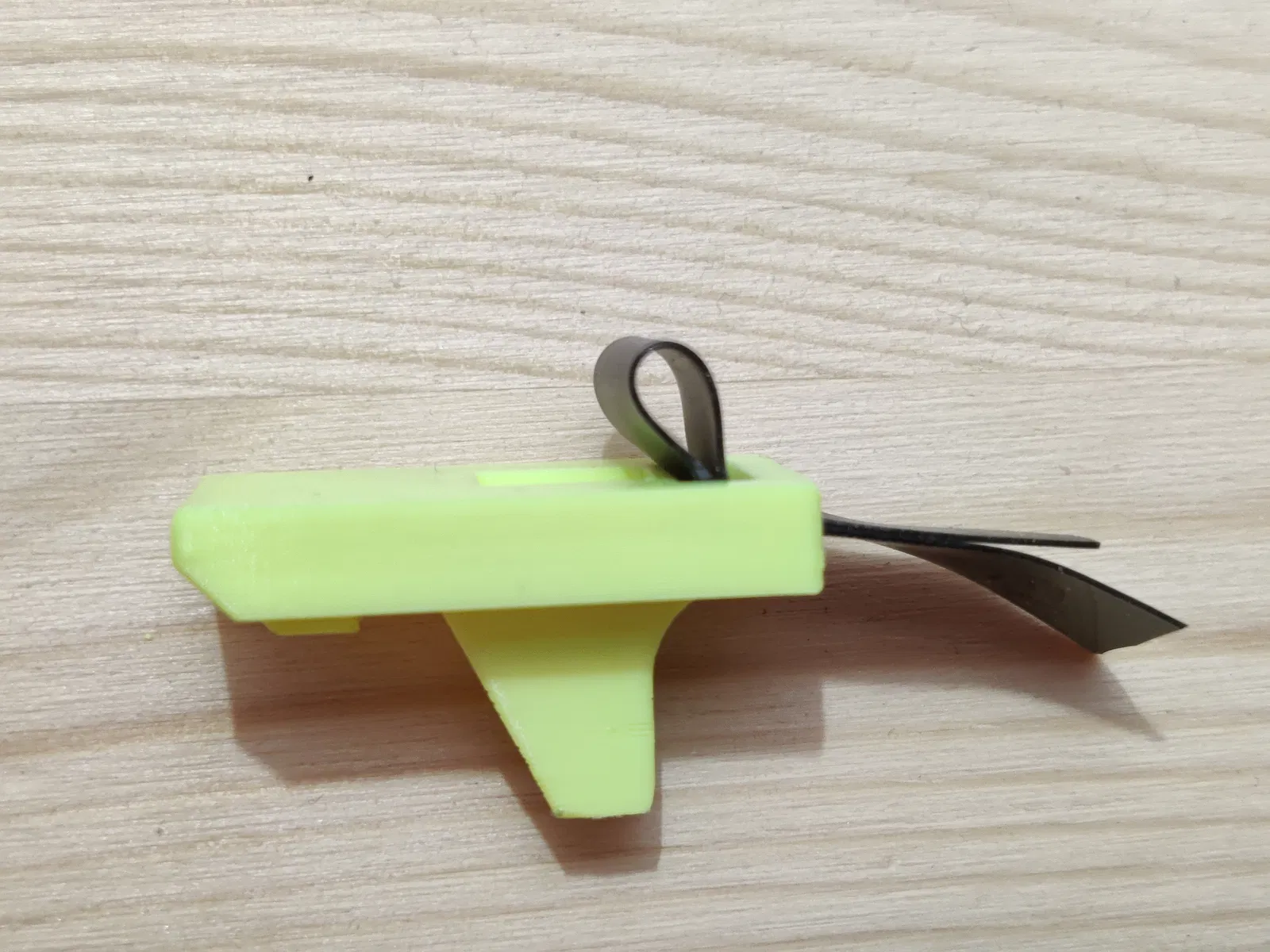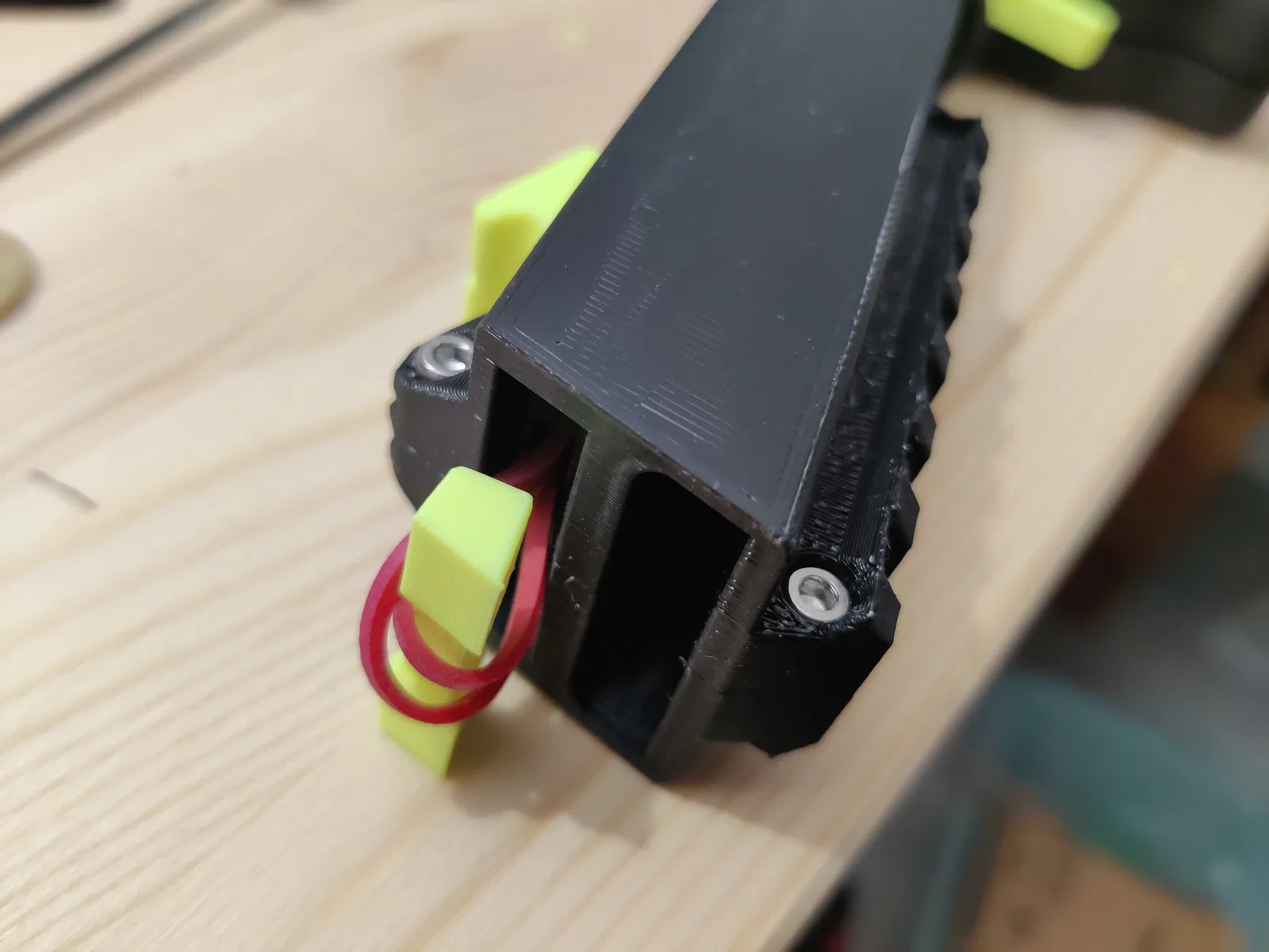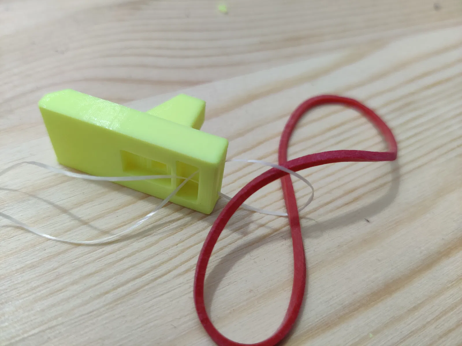 Nếu dùng bản dây thun, bạn có thể cần giũa hoặc chà nhám khu vực giữ dây. Do vân in nằm song song với hướng kéo của dây nên dây có thể bị trượt. Tôi đã từng bị như vậy, nhất là khi có dính dầu bôi trơn PTFE. Làm nhám khu vực này sẽ khắc phục vấn đề vĩnh viễn.