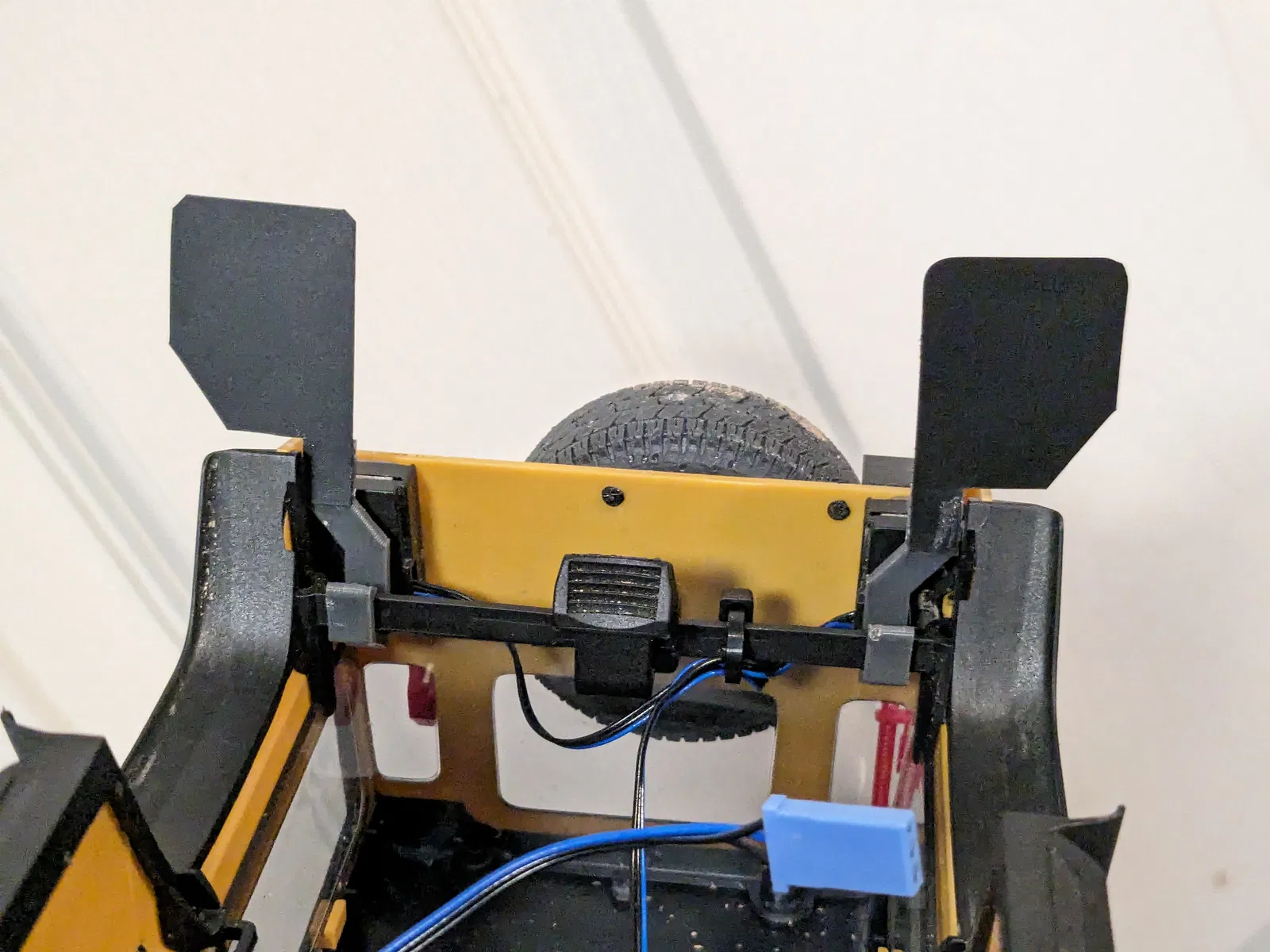 Phần ngàm này sẽ kẹp trực tiếp vào thanh ngang bên trong thân xe TRX-4M Defender. Mình có đính kèm file để in phần chắn bùn, nhưng cá nhân mình thì mua một cái bìa nhựa cứng màu đen giá 1 đô rồi cắt theo kích thước là xong. Bạn có thể in file chắn bùn ra để làm khuôn cắt cũng được.