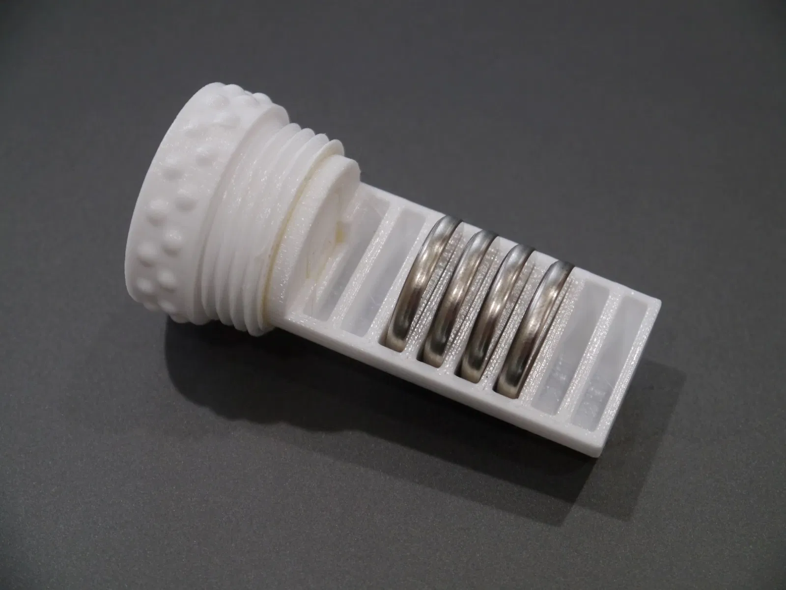 Điểm cộng lớn của mẫu thiết kế này là hình dáng nhỏ gọn, chiếm rất ít diện tích. Phần nắp được thiết kế vặn ren giúp đóng mở dễ dàng, trong khi các chi tiết gân nổi ở phần đầu giúp tăng độ bám, giúp bạn dễ dàng thao tác ngay cả khi tay đang trơn. Điểm nhấn thông minh là rãnh nhỏ ở bên cạnh, nó đóng vai trò như một điểm chỉ hướng để bạn dễ dàng căn chỉnh nắp khi đóng lại. Đây là một món phụ kiện in 3D hoàn hảo cho bất kỳ ai thích sự ngăn nắp.