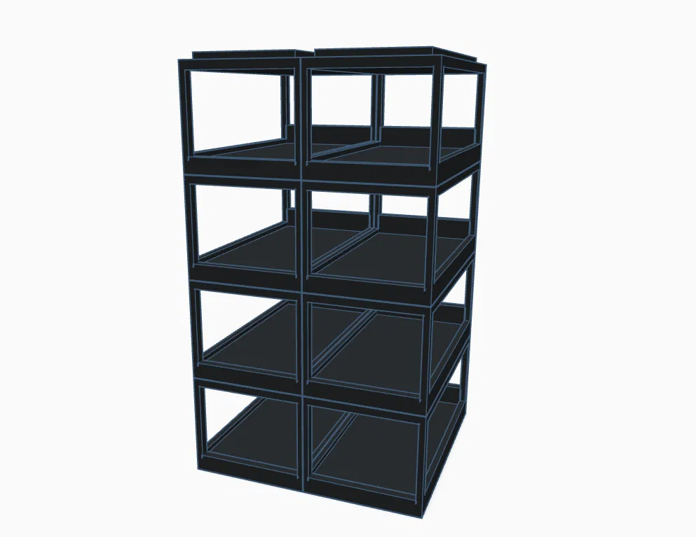- Khả năng xếp chồng linh hoạt: Các khung được thiết kế ăn khớp, cho phép bạn xây dựng cấu trúc trưng bày theo chiều ngang hoặc chiều dọc tùy thích.