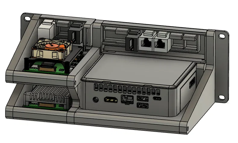 Bạn đang loay hoay tìm cách sắp xếp gọn gàng các thiết bị máy tính nhỏ gọn như Intel NUC hay Raspberry Pi vào trong hệ thống tủ Rack 10 inch của mình? Mẫu thiết kế 3D này chính là giải pháp hoàn hảo dành cho bạn. Với khung đỡ được thiết kế tối ưu, bạn có thể dễ dàng gắn 1 chiếc Intel NUC Gen8 cùng với 2 chiếc Raspberry Pi 4 lên cùng một không gian, giúp tiết kiệm tối đa diện tích mà vẫn giữ được sự ngăn nắp cho góc kỹ thuật của mình.