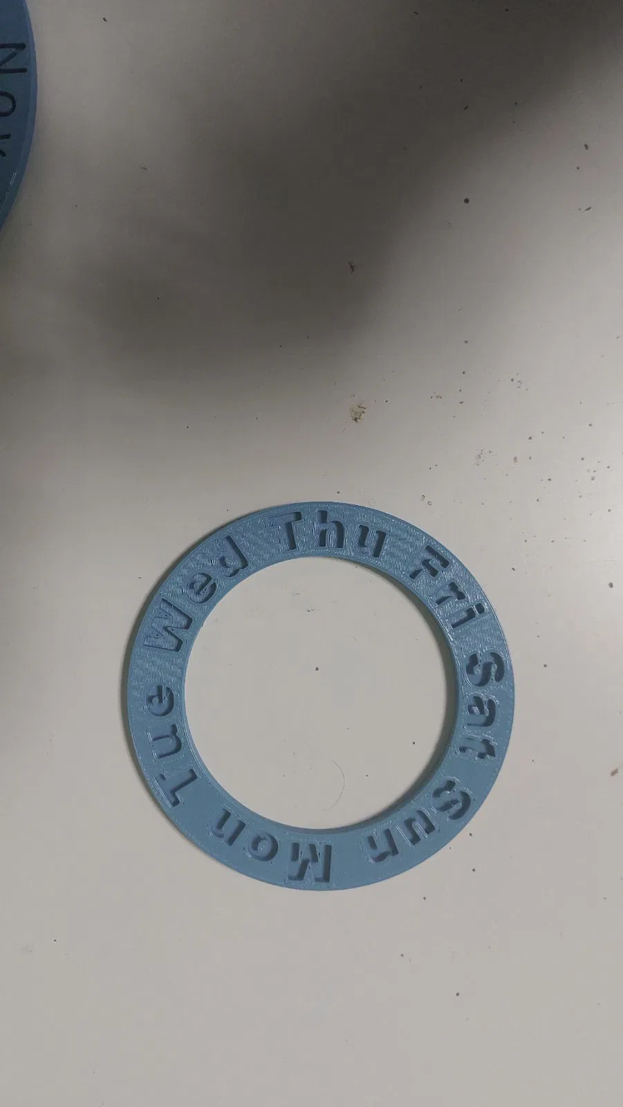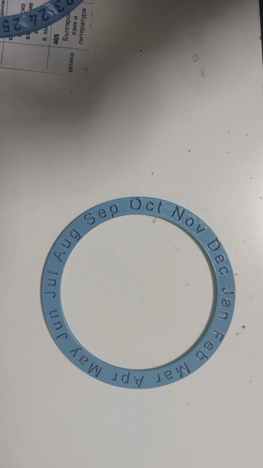 Chiều cao lớp in (layer height) = 0.3 mm. Hướng dẫn lắp ráp: Trước tiên, hãy đặt từng vòng tròn vào đúng vị trí tương ứng với các chữ cái và con số hướng lên trên. Vòng nhỏ nhất nằm ở rãnh gần tâm nhất.
