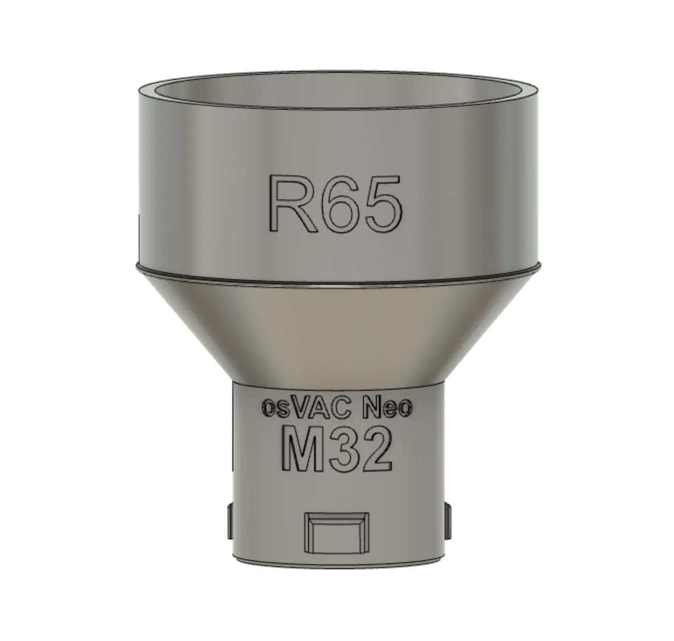 Đây là mẫu đầu chuyển đổi osVAC dành riêng cho máy bào Metabo DH330 với đường kính trong 65,5 mm. Mẫu này cần được in với độ phủ 50% cùng brim, đặt phần đầu lớn sát mặt bàn in để đảm bảo độ chắc chắn và hiệu quả sử dụng.