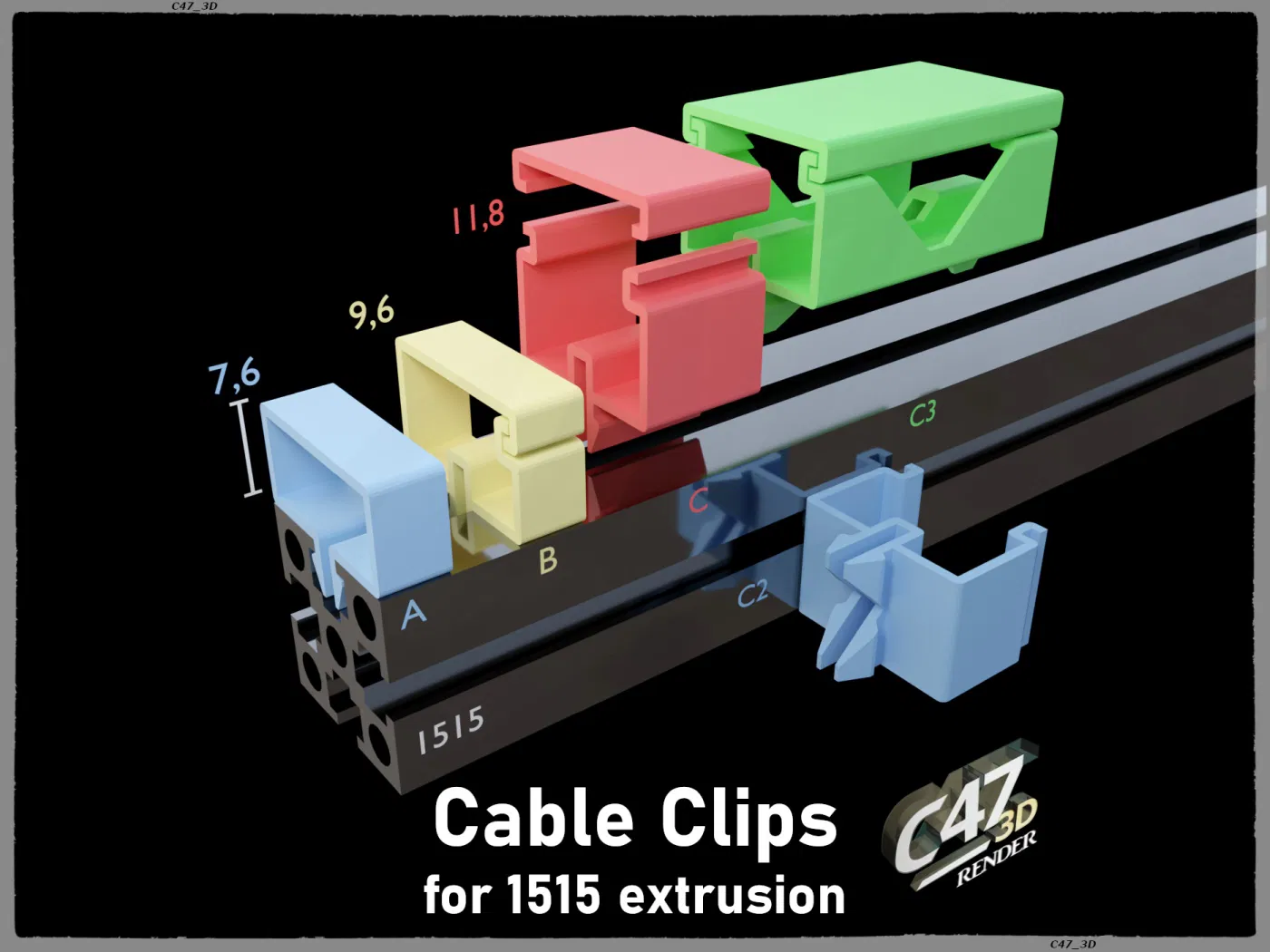 A2, B2, C2 có thiết kế 'răng' cắt giúp giữ kẹp chặt hơn trên thanh nhôm Loại này cần ít lực hơn để lắp vào và dễ tháo ra hơn, nhưng đòi hỏi khả năng làm mát tốt một chút (mô hình có các chi tiết góc nghiêng 45 độ)