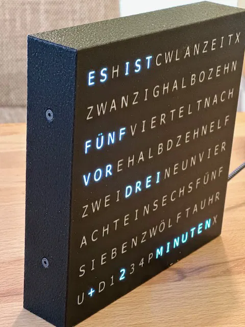 Bản remix đồng hồ Wordclock từ AWSW với thiết kế tối ưu cho in đa sắc (multicolor). Cải tiến mặt trước phẳng dễ đọc, sử dụng vít chắc chắn và tích hợp sẵn cổng USB-C tiện lợi cho người dùng.
