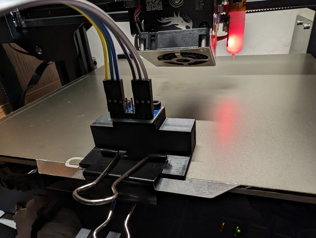 Dùng kẹp bướm phù hợp để kẹp cảm biến vào bàn in khi đo trục Y.
