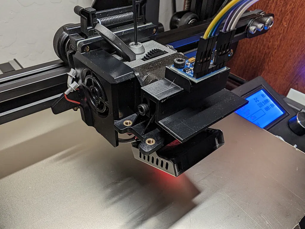 Sử dụng 1 con vít M3x8 ở bên trái đầu đùn (extruder) để thay thế tạm thời cho vít giữ quạt/cảm biến ABL zin của Sprite giúp cố định chắc chắn. Con vít M3x6 đầu tròn zin của đầu đùn thì bạn chuyển sang bên phải trong quá trình đo đạc. Đừng siết quá chặt, bạn có thể làm hỏng hoặc cháy ren nhôm của thân motor bước đấy.